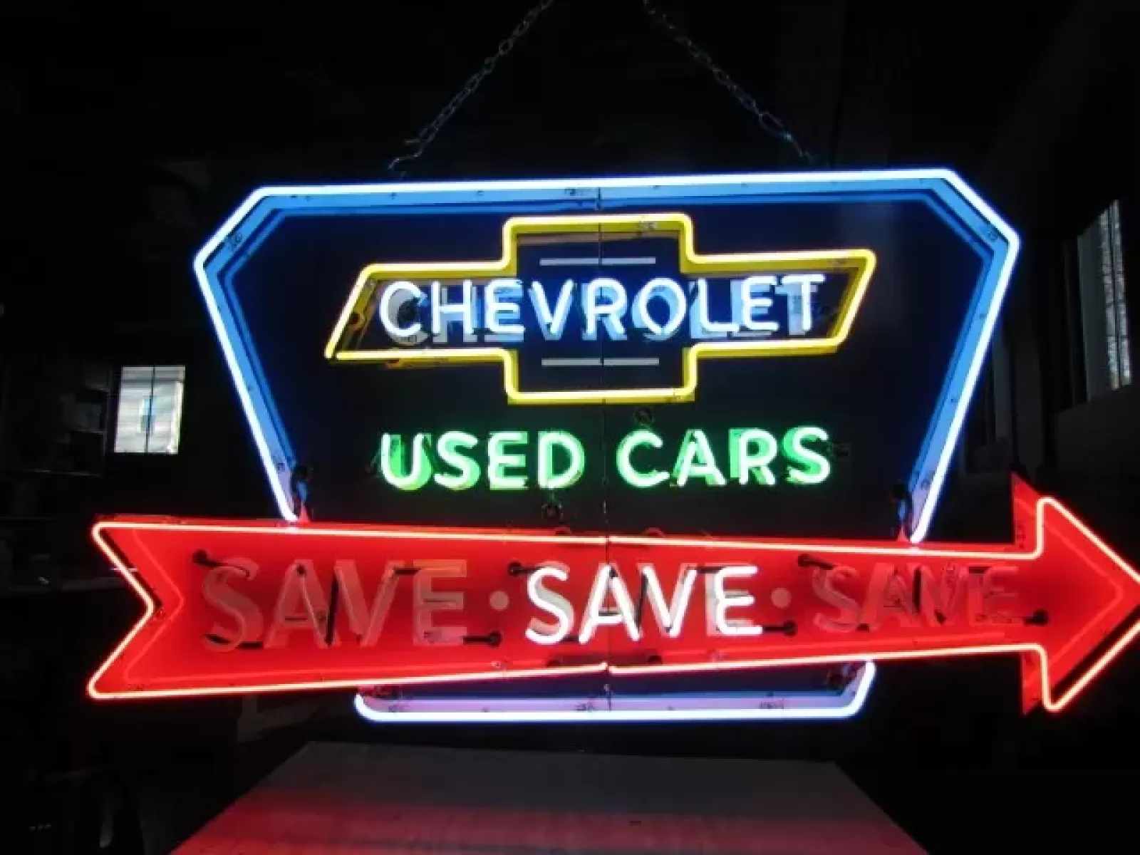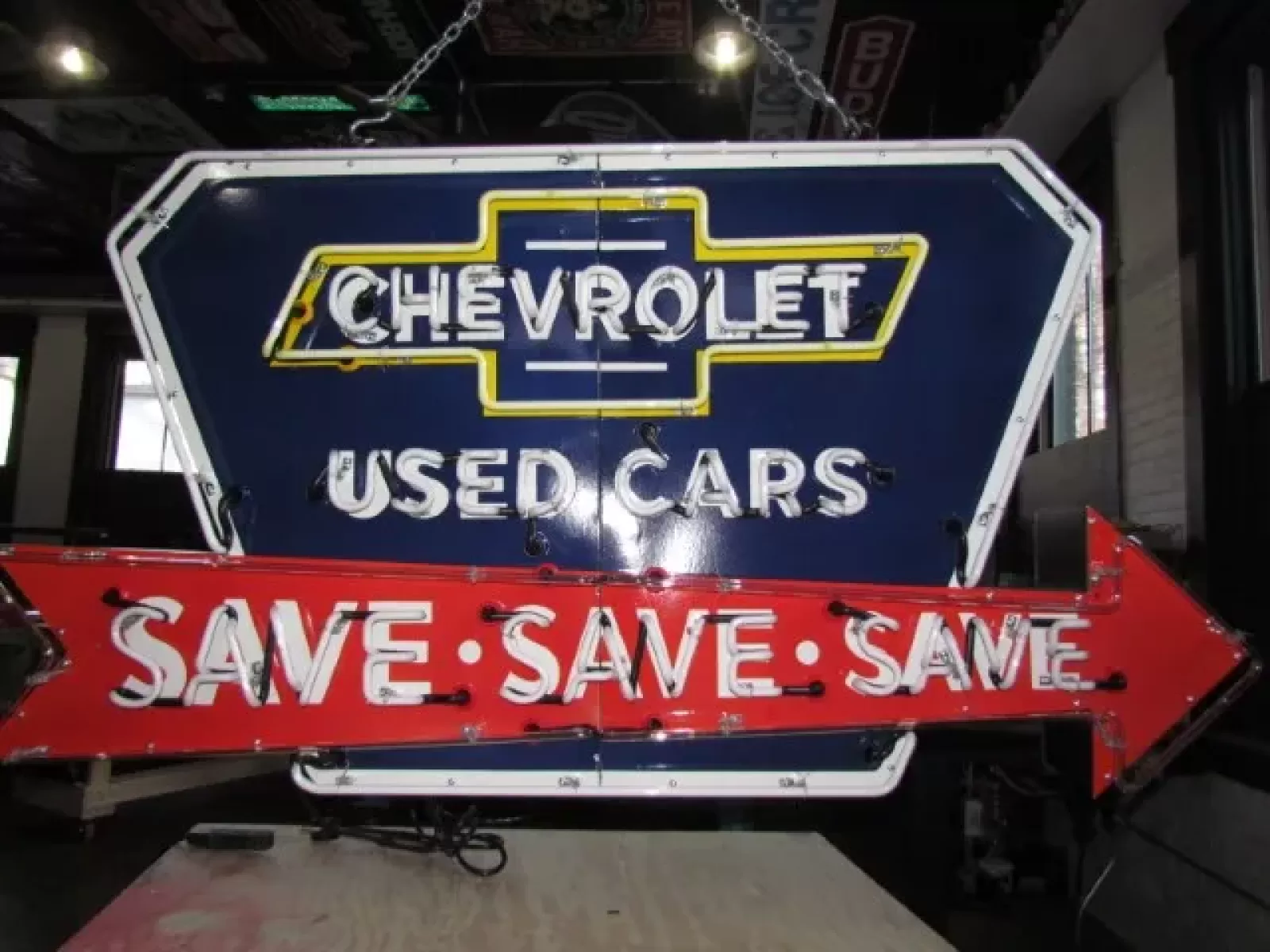 New Chevy "Save" Animated Porcelain Neon 72"W x 36"H.