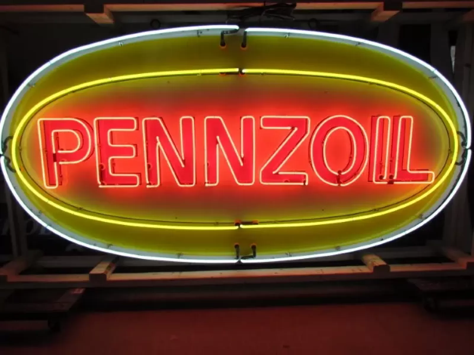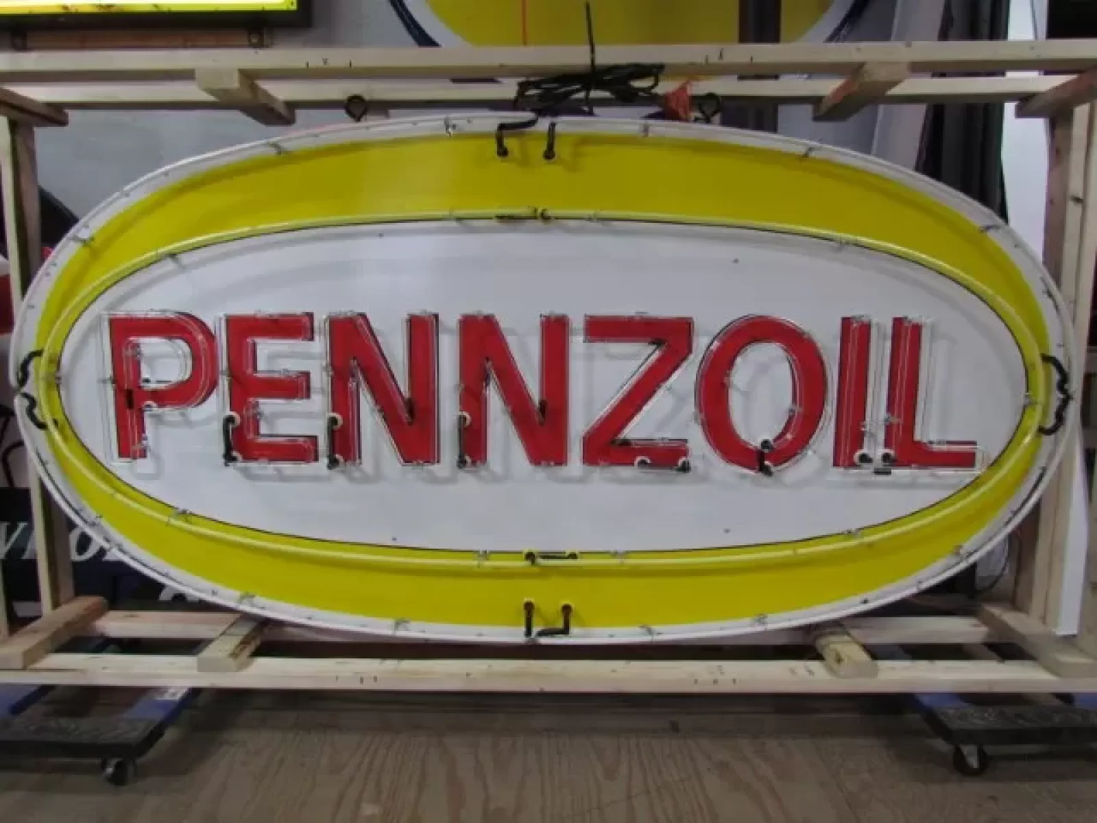 Original Pennzoil Porcelain Sign with Neon 6 FT Wide x 42 IN High