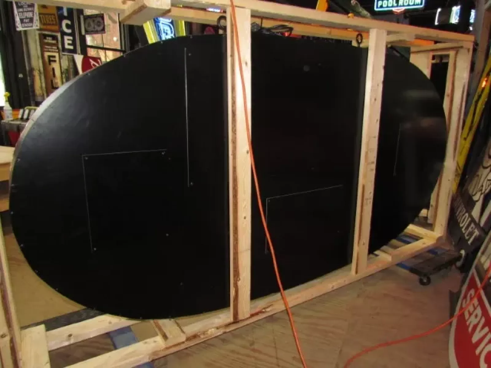 Our neon glass benders all have over 25 years each bending glass & their work is flawless. The faces of our signs are clean & pop for that for that perfect look. The backside of our signs have a 6" deep metal enclosure (can) that contains the best parts available today including the glass housings,  wiring,  self regulating transformers, mechanical chasers or spellers, wall brackets & roof hook supports & support framework for our larger signs.