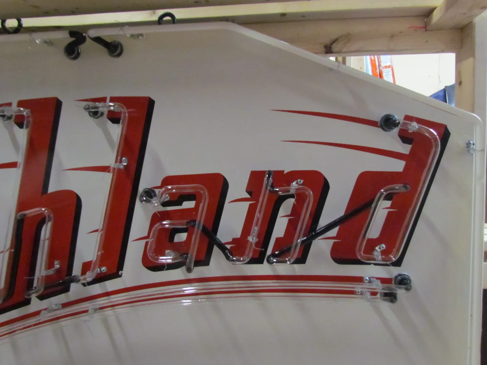 Our neon glass benders all have over 25 years each bending glass & their work is flawless. The faces of our signs are clean & pop for that for that perfect look. The backside of our signs have a 6" deep metal enclosure (can) that contains the best parts available today including the glass housings,  wiring,  self regulating transformers, mechanical chasers or spellers, wall brackets & roof hook supports & support framework for our larger signs.