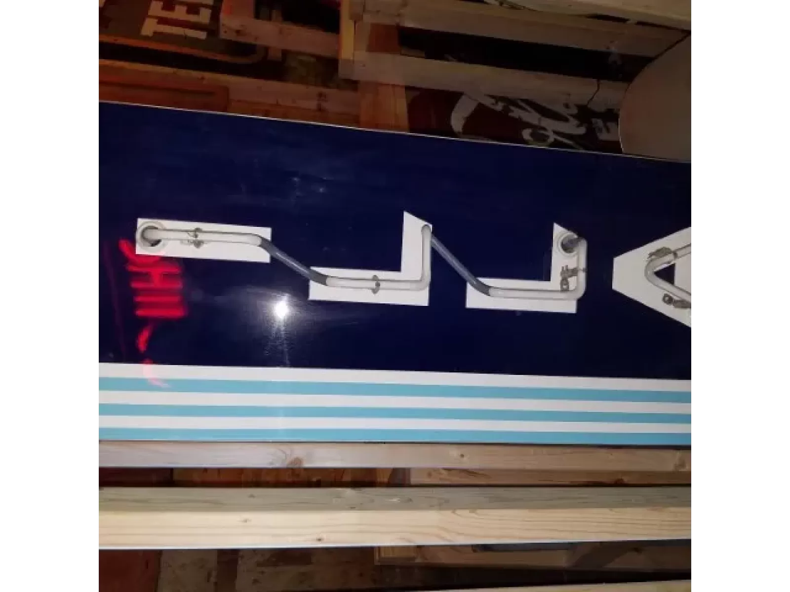 Please do not confuse our neon signs with the neon signs being sold in the large car auctions around the country. Our new signs are painted just like they were in the 1940's & 1950's. Most new signs at the auctions are either clear-coated vinyl or screen-printed. Our new painted signs are built the same as tin painted signs from the 1930's - 1950's. The only difference is instead of tin we are using factory primed aluminum.