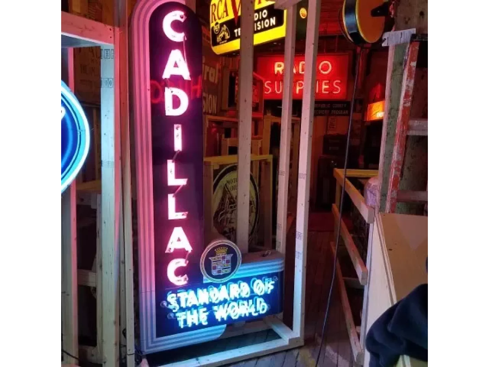 New Cadillac Standard of the World Double-sided Porcelain Neon Sign 8 FT Tall