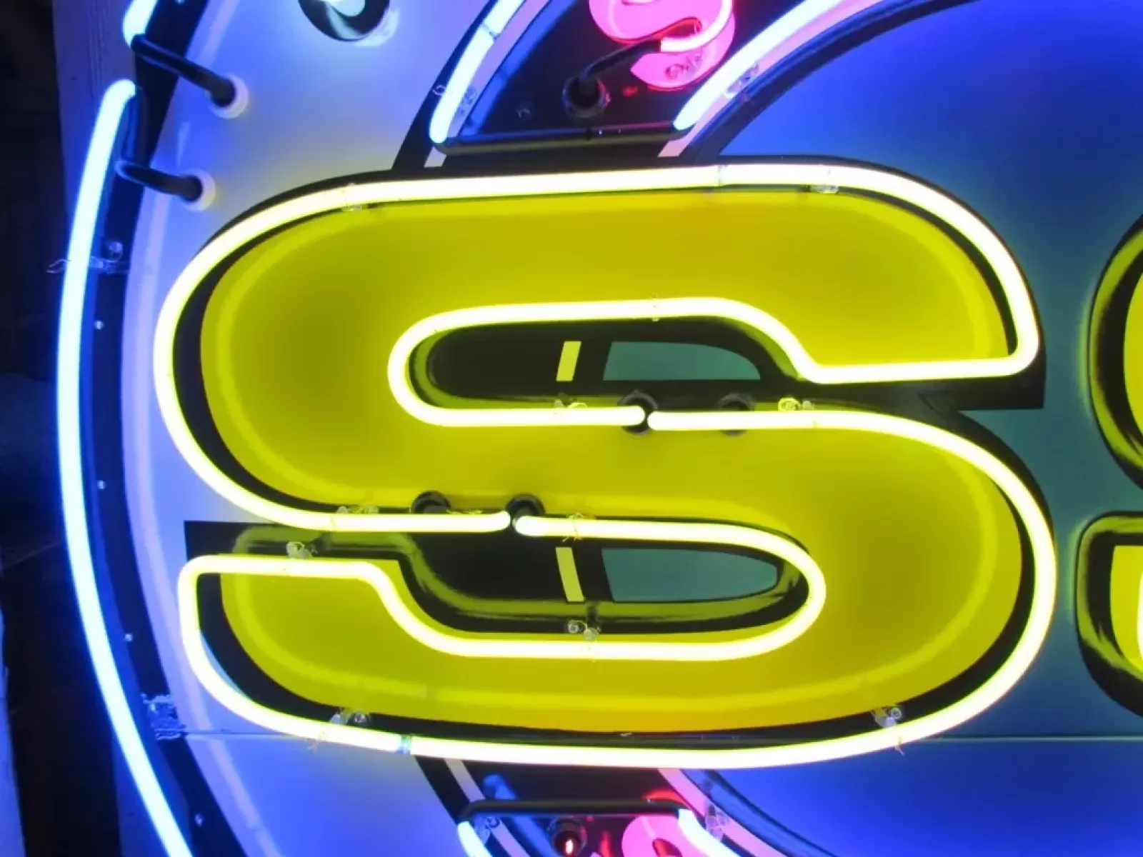 Our neon glass benders all have over 25 years each bending glass & their work is flawless. The faces of our signs are clean & pop for that for that perfect look. The backside of our signs have a 6" deep metal enclosure (can) that contains the best parts available today including the glass or porcelain housings, GTO wiring, self regulating magnetic transformers, heavy-duty hanging hooks and steel wall brackets all attached to heavy-duty welded steel frame.