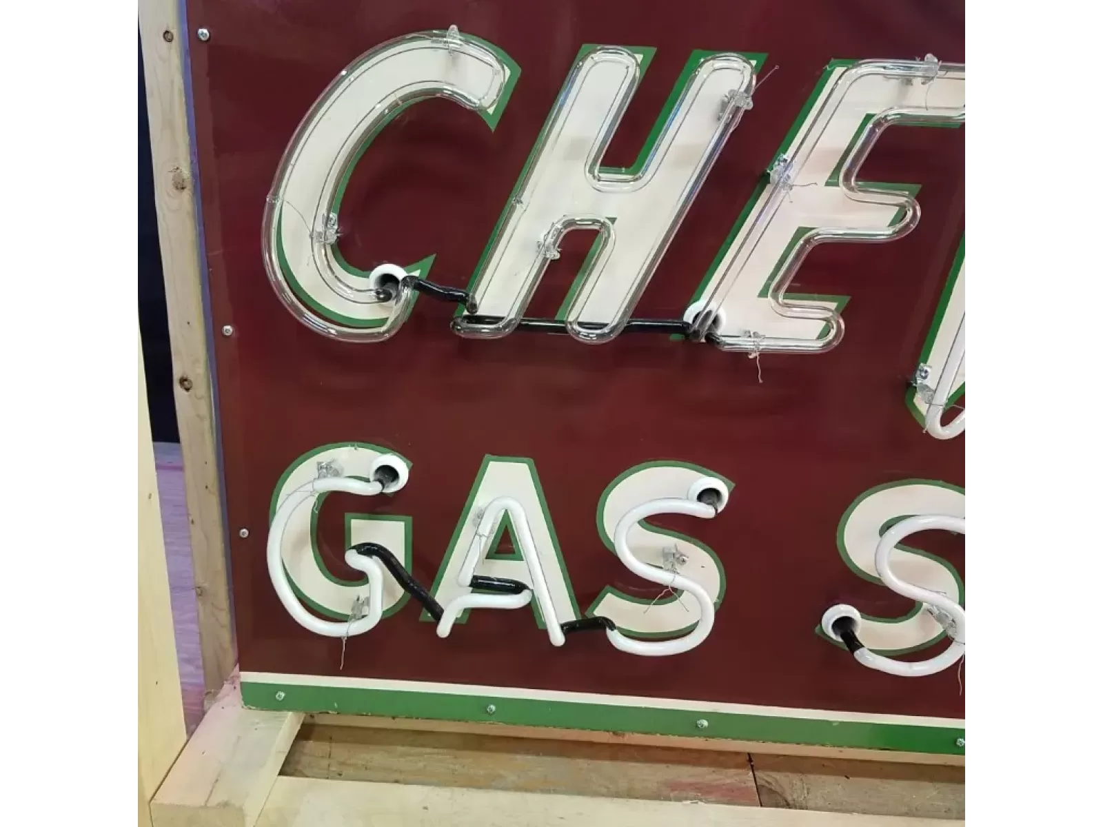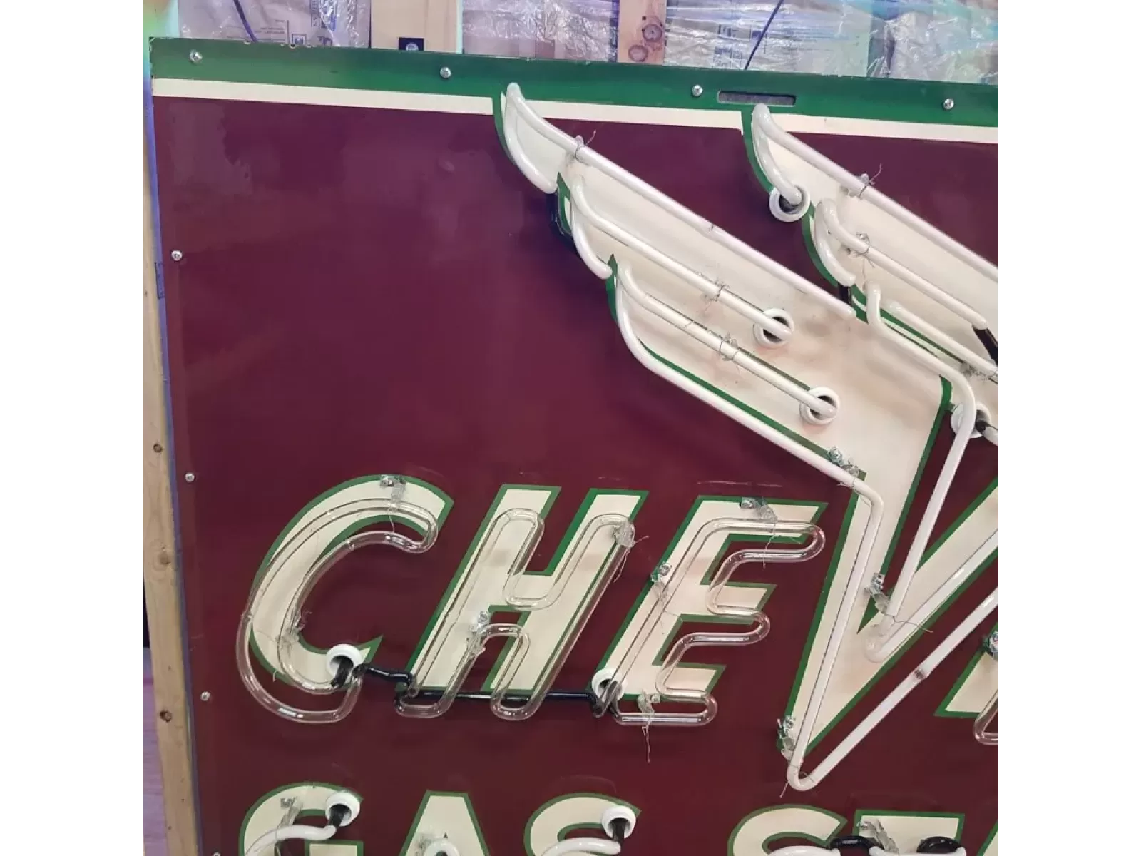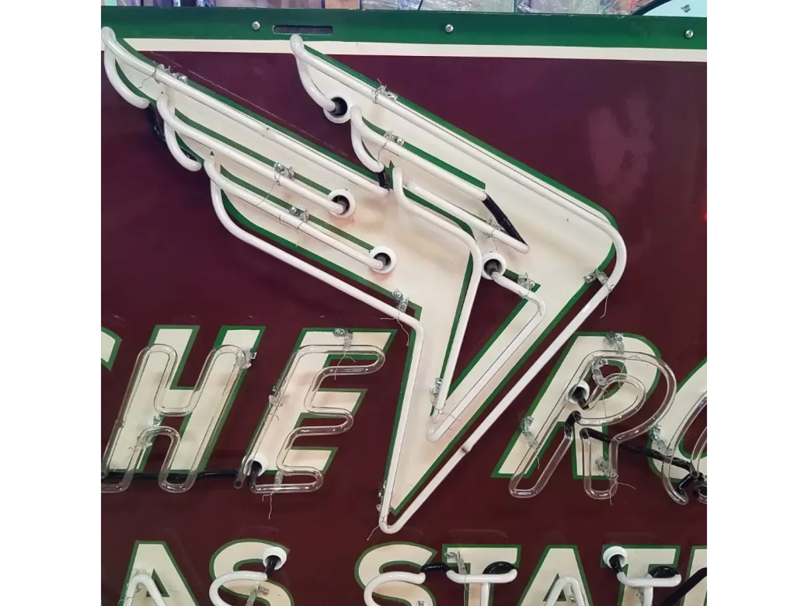 New "Chevron Gas Station" Single-Sided Porcelain Neon Sign 60"W x 42"H