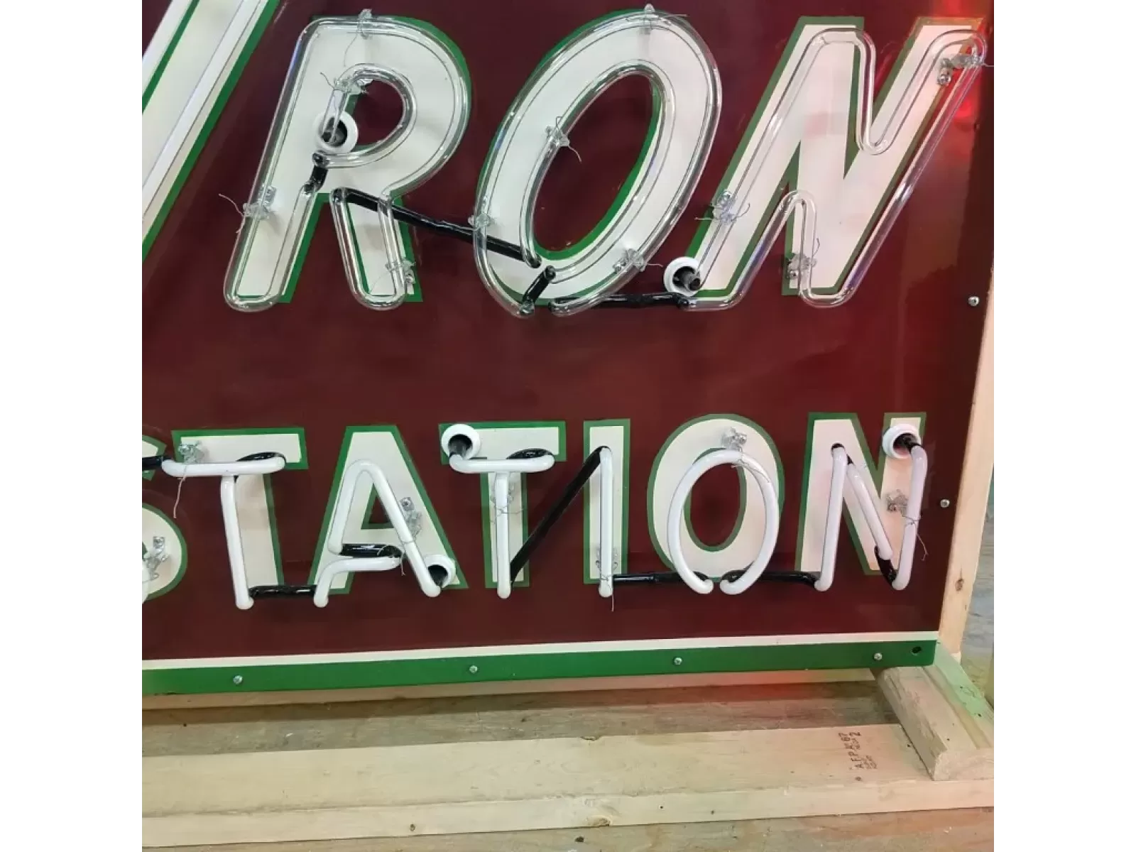 Please do not confuse our neon signs with the neon signs being sold in the large car auctions around the country. Our new signs are painted just like they were in the 1940's & 1950's. Most new signs at the auctions are either clear-coated vinyl or screen-printed. Our new painted signs are built the same as tin painted signs from the 1930's - 1950's. The only difference is instead of tin we are using factory primed aluminum.