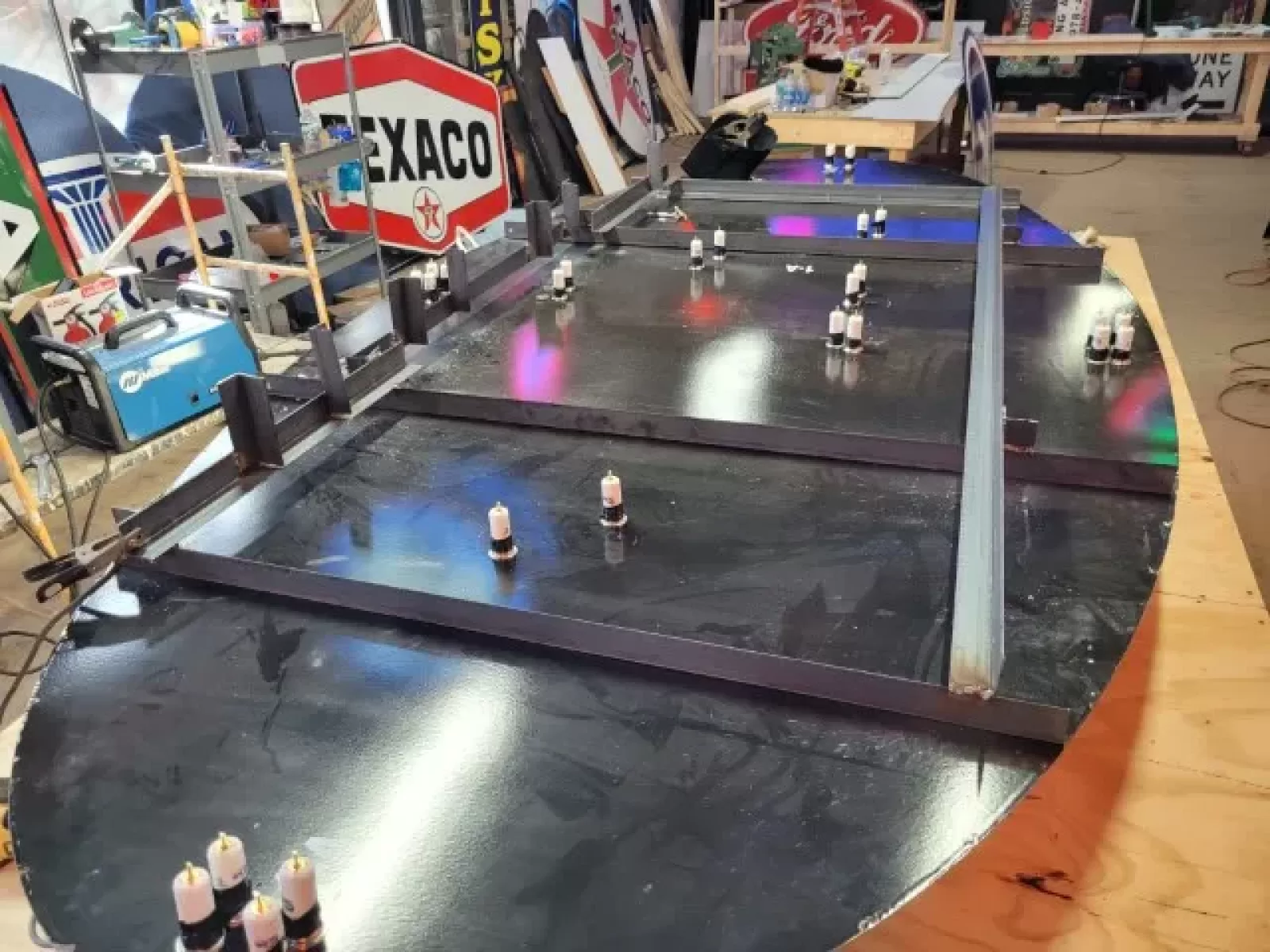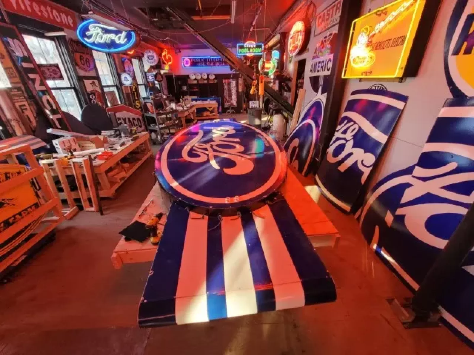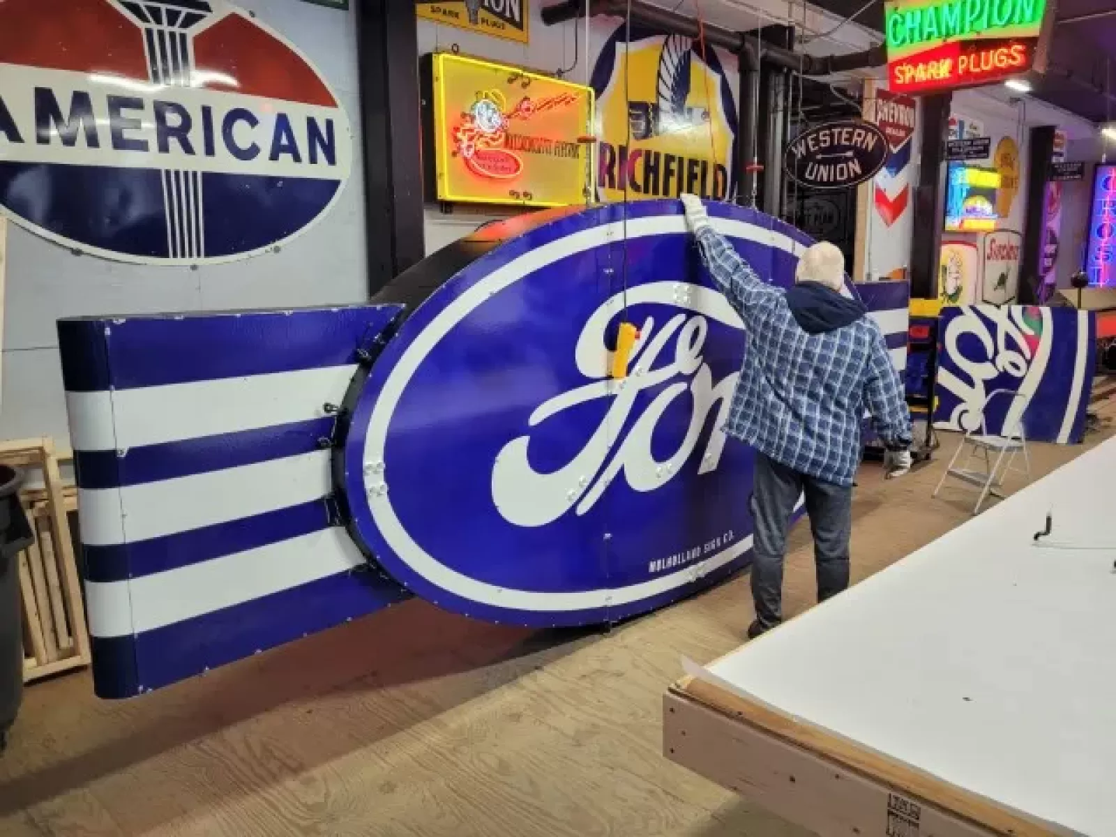 We also offer over 100 new painted full size signs available to choose from, or bring your own ideas and we will custom build a sign for you. Our new signs are made right here in our shop & look right at home next to your original porcelain neon signs. Our new signs are hand painted just like they have been for almost a century. Our lead sign painter has been painting signs for over 60 years & oversees all artwork.
