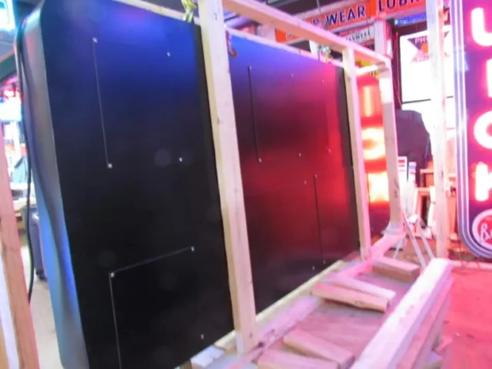 Our neon glass benders all have over 25 years each bending glass & their work is flawless. The faces of our signs are clean & pop for that for that perfect look. The backside of our signs have a 6" deep metal enclosure (can) that contains the best parts available today including the glass housings,  wiring,  self regulating transformers, mechanical chasers or spellers, wall brackets & roof hook supports & support framework for our larger signs.