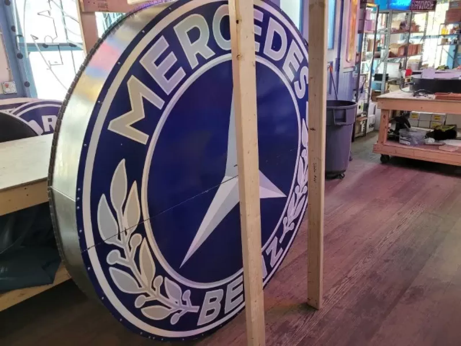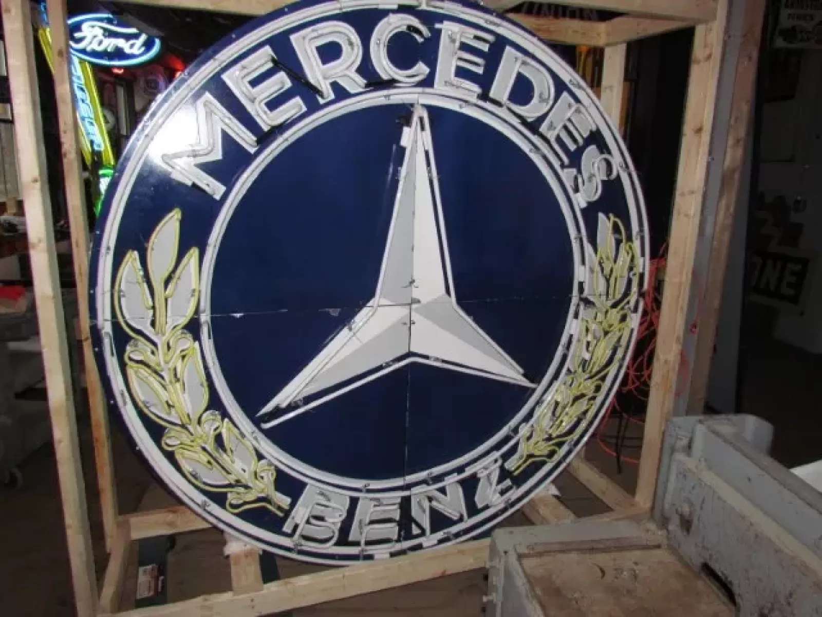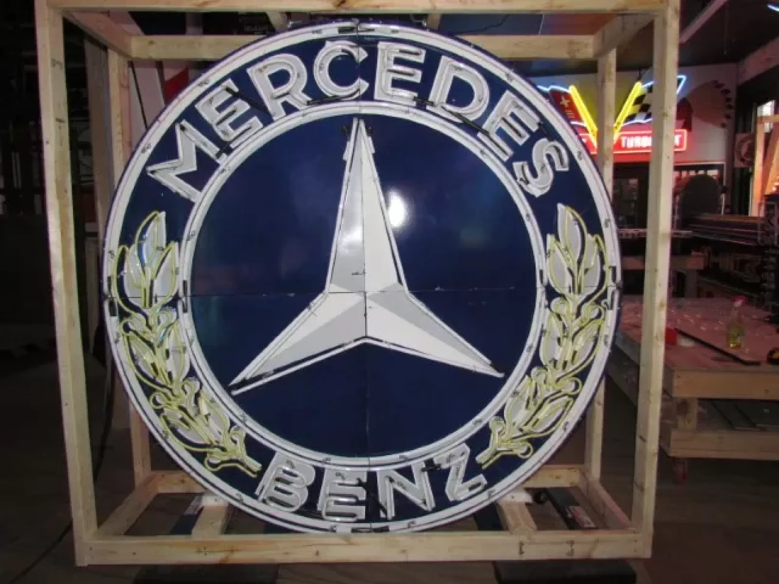 New Mercedes Benz Double-Sided Porcelain Neon Sign 72 IN Diameter with New Aged Steel Can