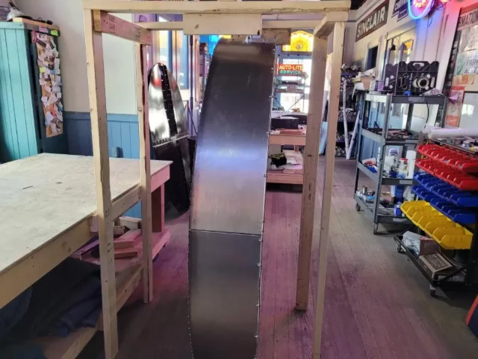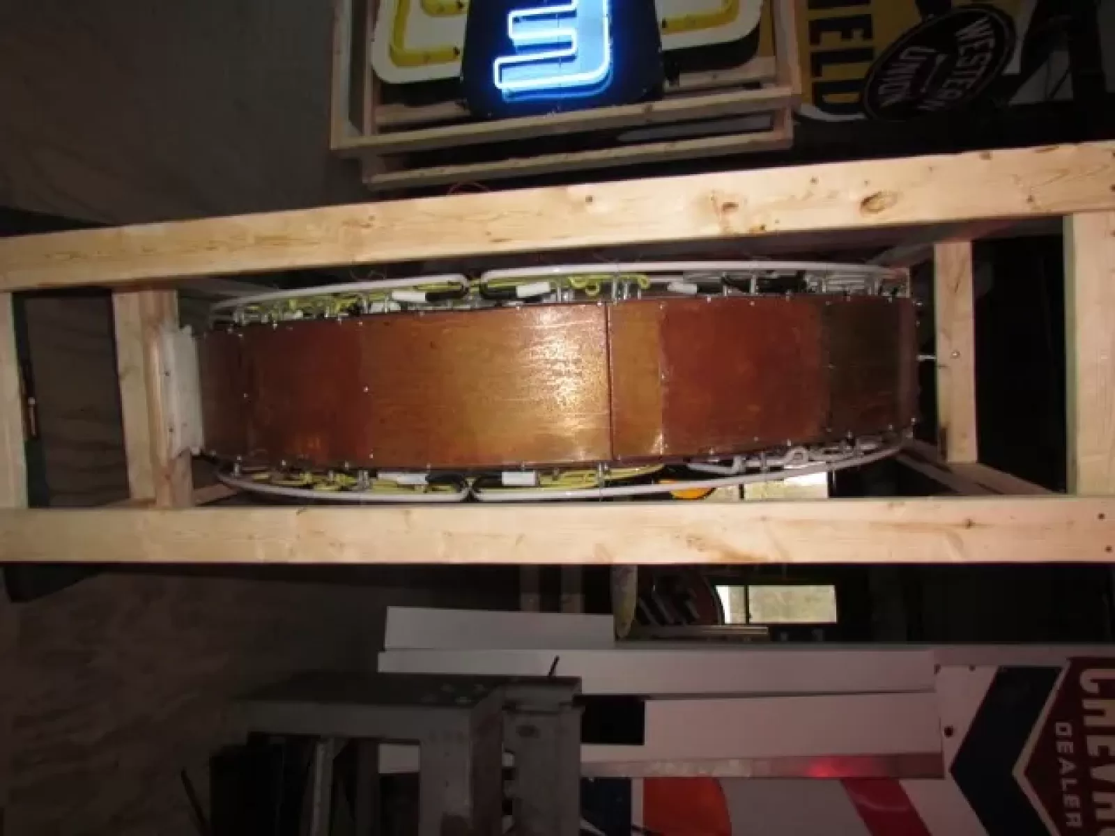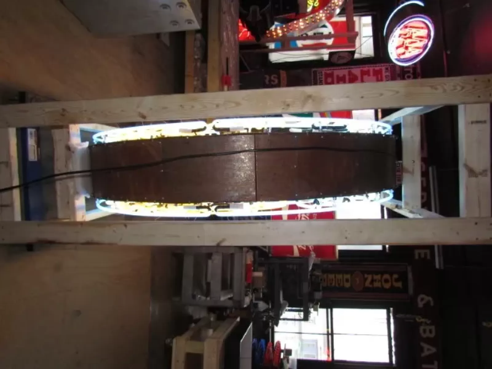 Our neon glass benders all have over 25 years each bending glass & their work is flawless. The faces of our signs are clean & pop for that for that perfect look. The backside of our signs have a 6" deep metal enclosure (can) that contains the best parts available today including the glass housings,  wiring,  self regulating transformers, mechanical chasers or spellers, wall brackets & roof hook supports & support framework for our larger signs.
