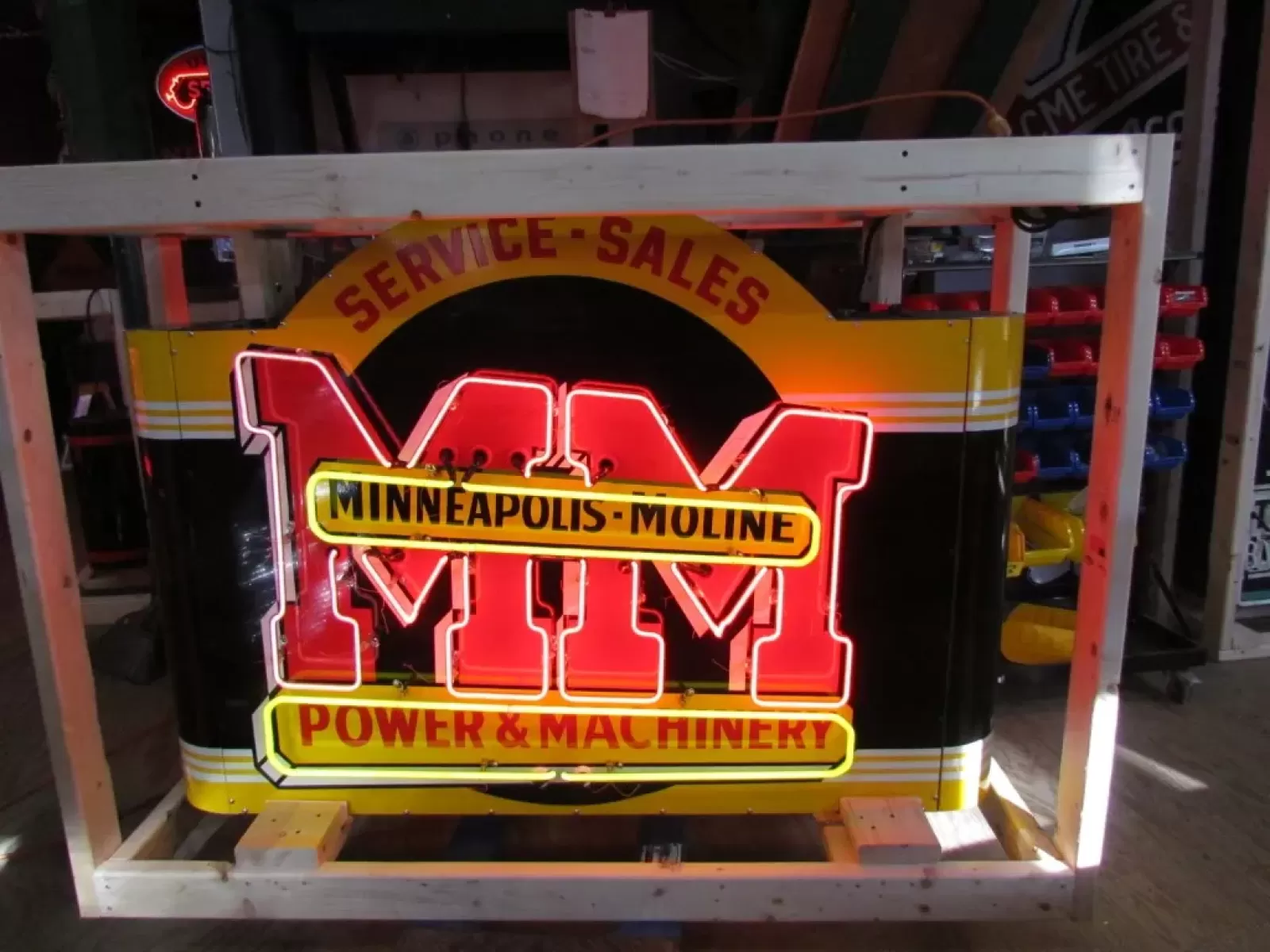 New Minneapolis Moline Double-Sided Porcelain Neon Sign with Bullnose Ends 60"W x 42"H