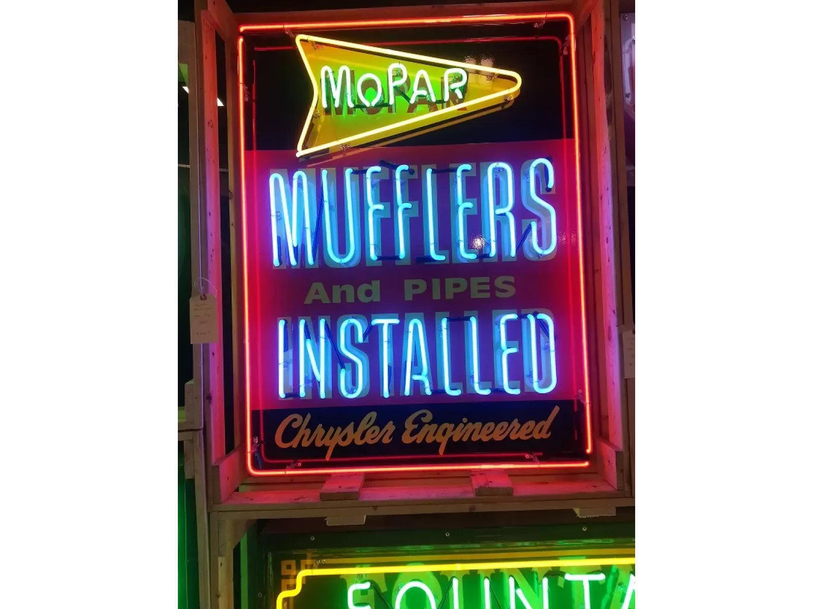New Mopar Mufflers & Pipes Installed Porcelain Neon Sign 36"W x 42"H