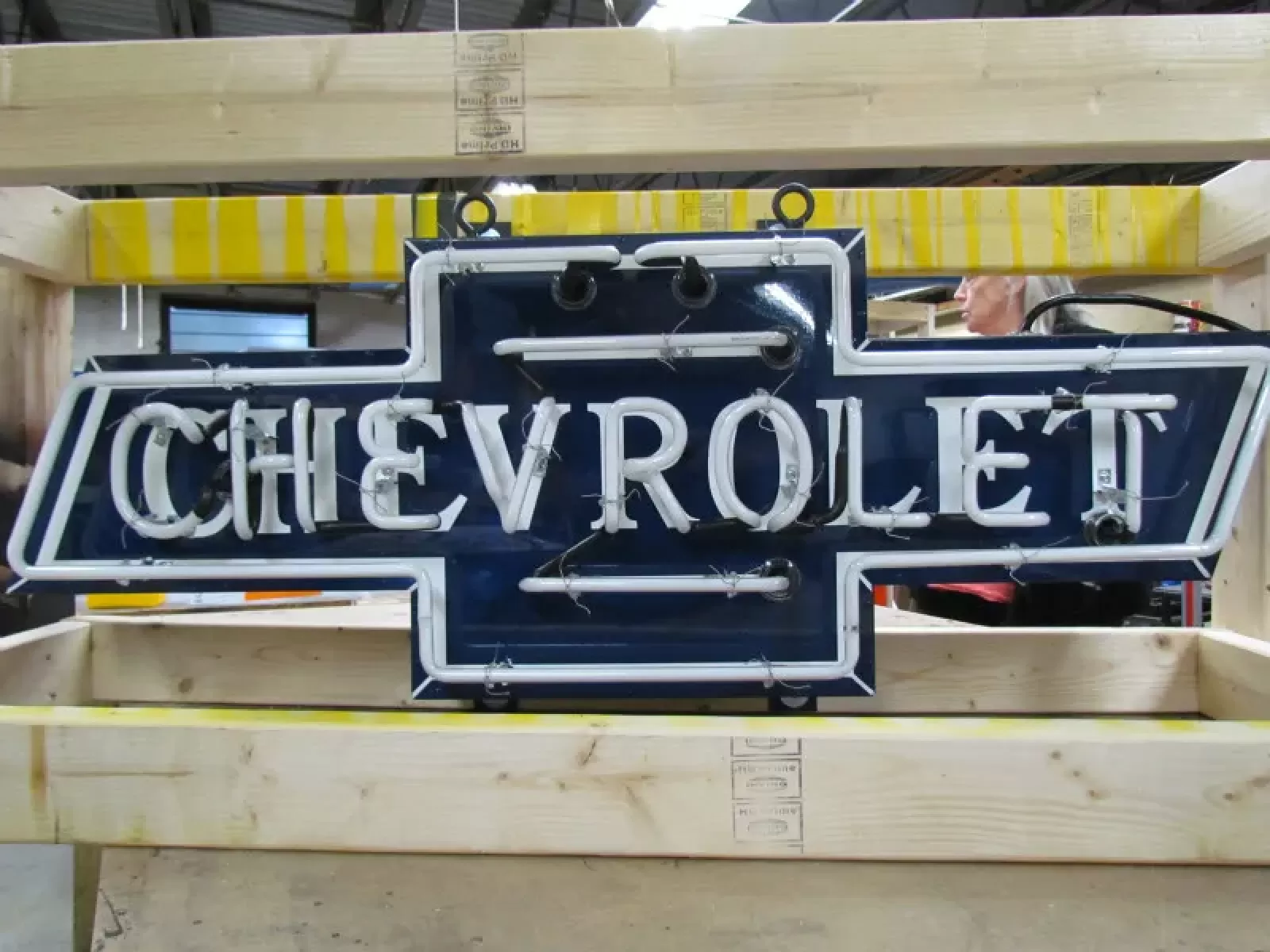 Our neon glass benders all have over 25 years each bending glass & their work is flawless. The faces of our signs are clean & pop for that for that perfect look. The backside of our signs have a 6" deep metal enclosure (can) that contains the best parts available today including the glass housings, wiring, self regulating transformers, mechanical chasers or spellers, wall brackets & roof hook supports & support framework for our larger signs.