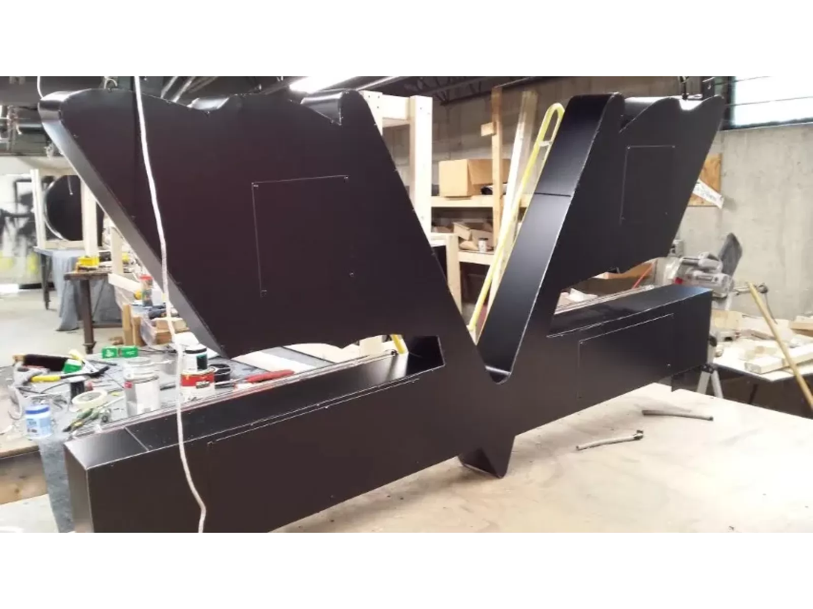 Our neon glass benders all have over 25 years each bending glass & their work is flawless. The faces of our signs are clean & pop for that for that perfect look. The backside of our signs have a 6" deep metal enclosure (can) that contains the best parts available today including the glass housings, wiring, self regulating transformers, mechanical chasers or spellers, wall brackets & roof hook supports & support framework for our larger signs.