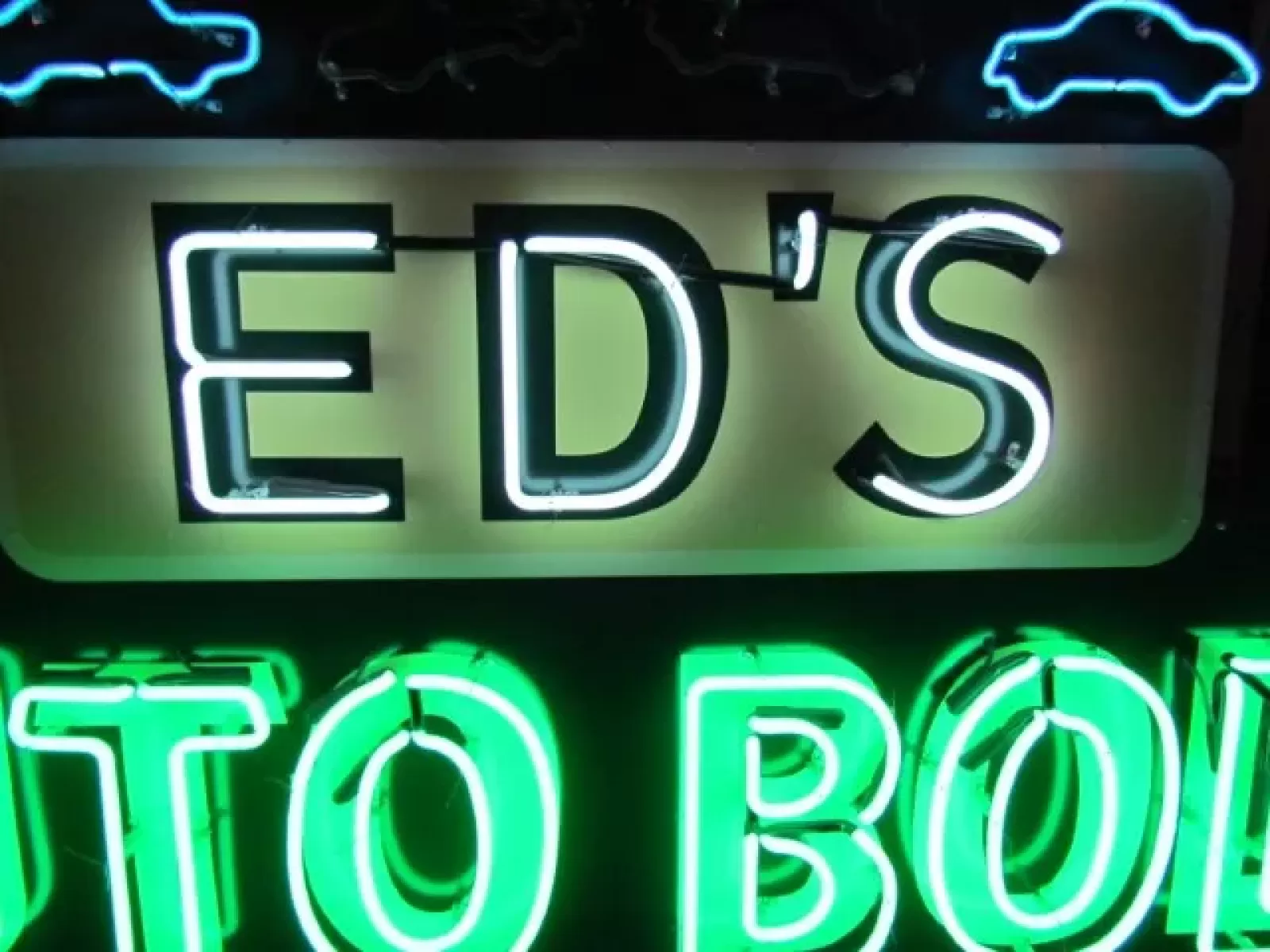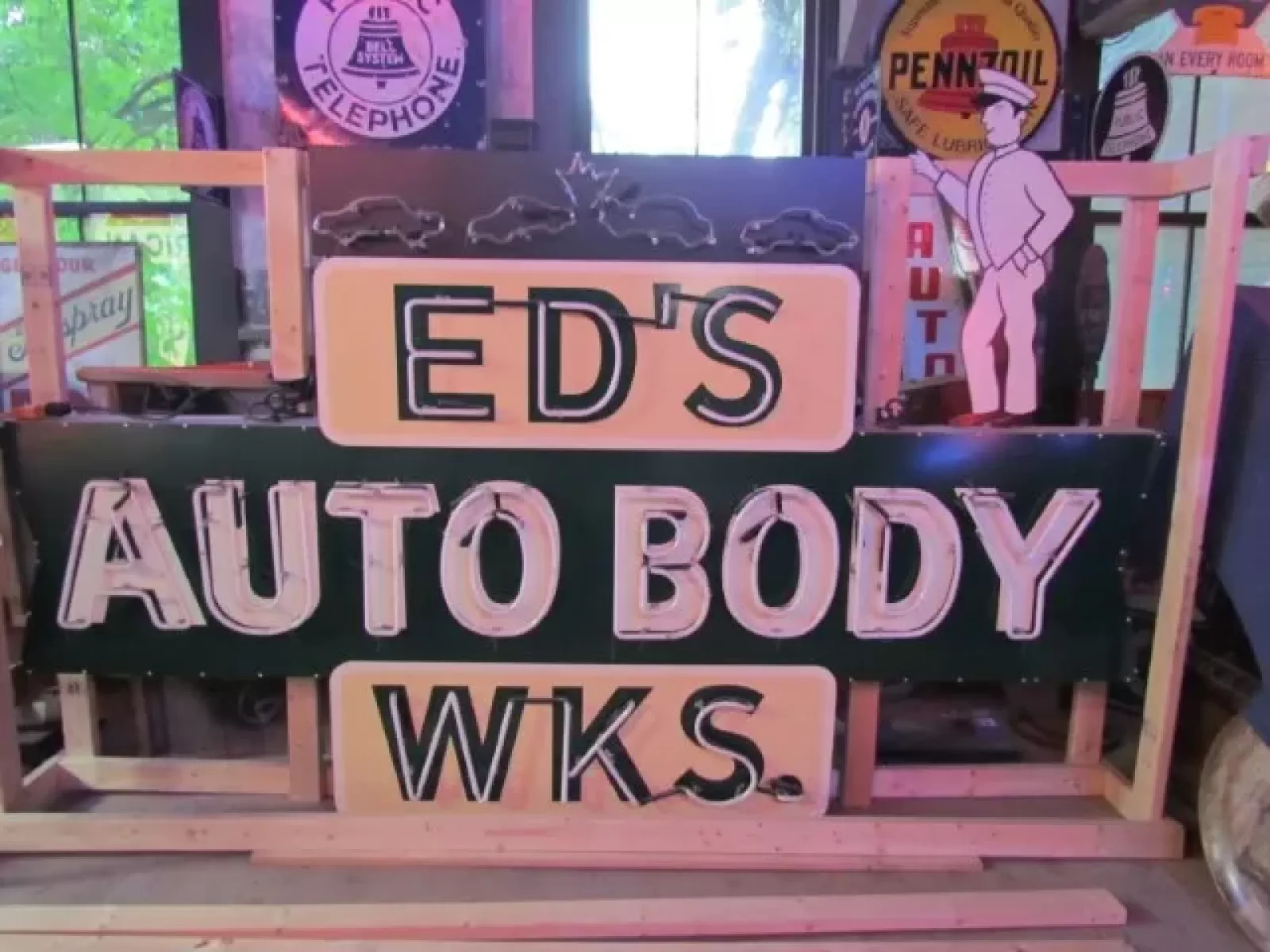 New "Ed's Auto Body Wks" Animated Painted Neon Sign 10 FT W x 71"H