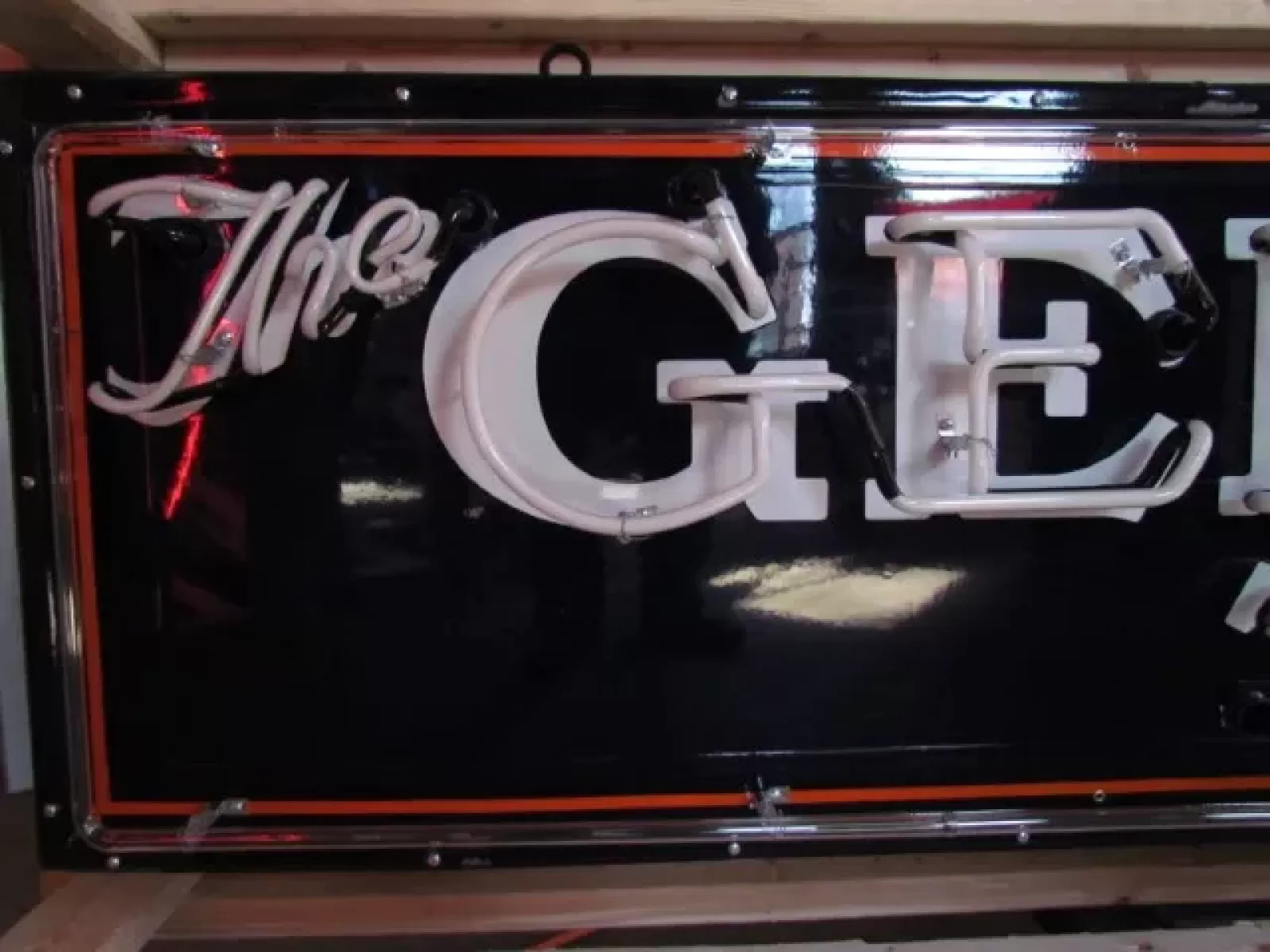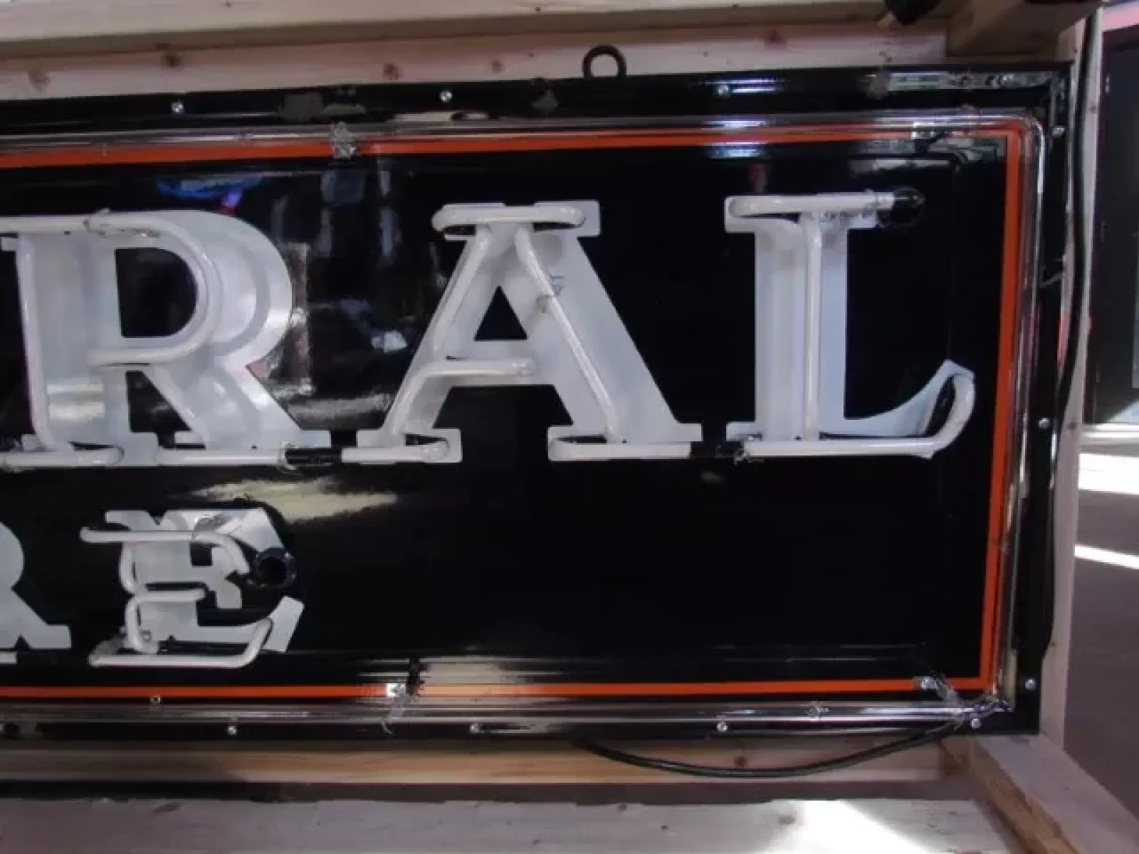 Our neon glass benders all have over 25 years each bending glass & their work is flawless. The faces of our signs are clean & pop for that for that perfect look. The backside of our signs have a 6" deep metal enclosure (can) that contains the best parts available today including the glass housings,  wiring,  self regulating transformers, mechanical chasers or spellers, wall brackets & roof hook supports & support framework for our larger signs.
