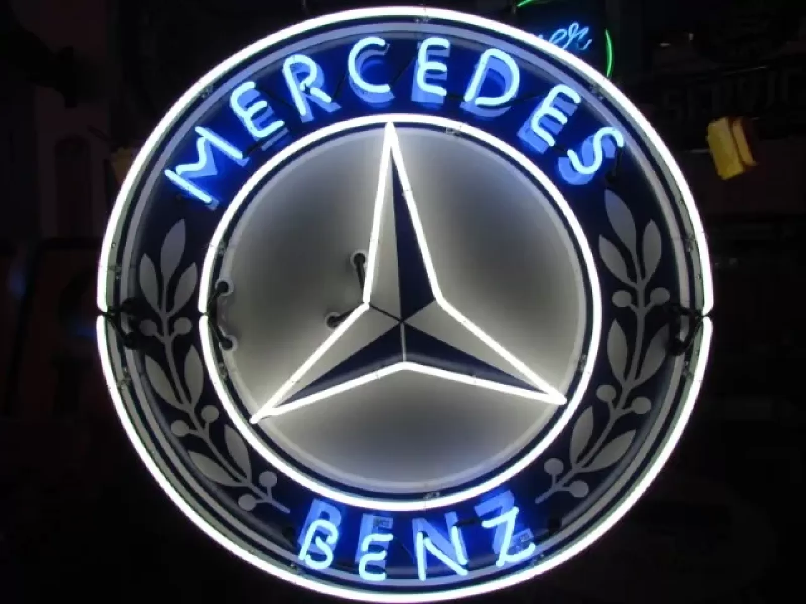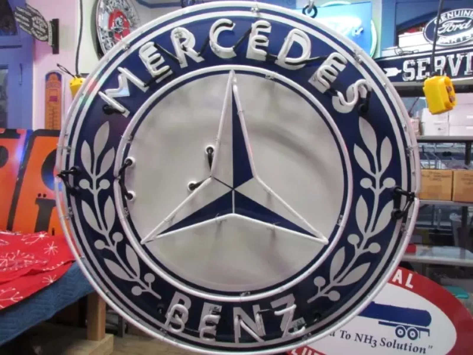 New Mercedes Porcelain Neon Sign 60 IN Diameter.