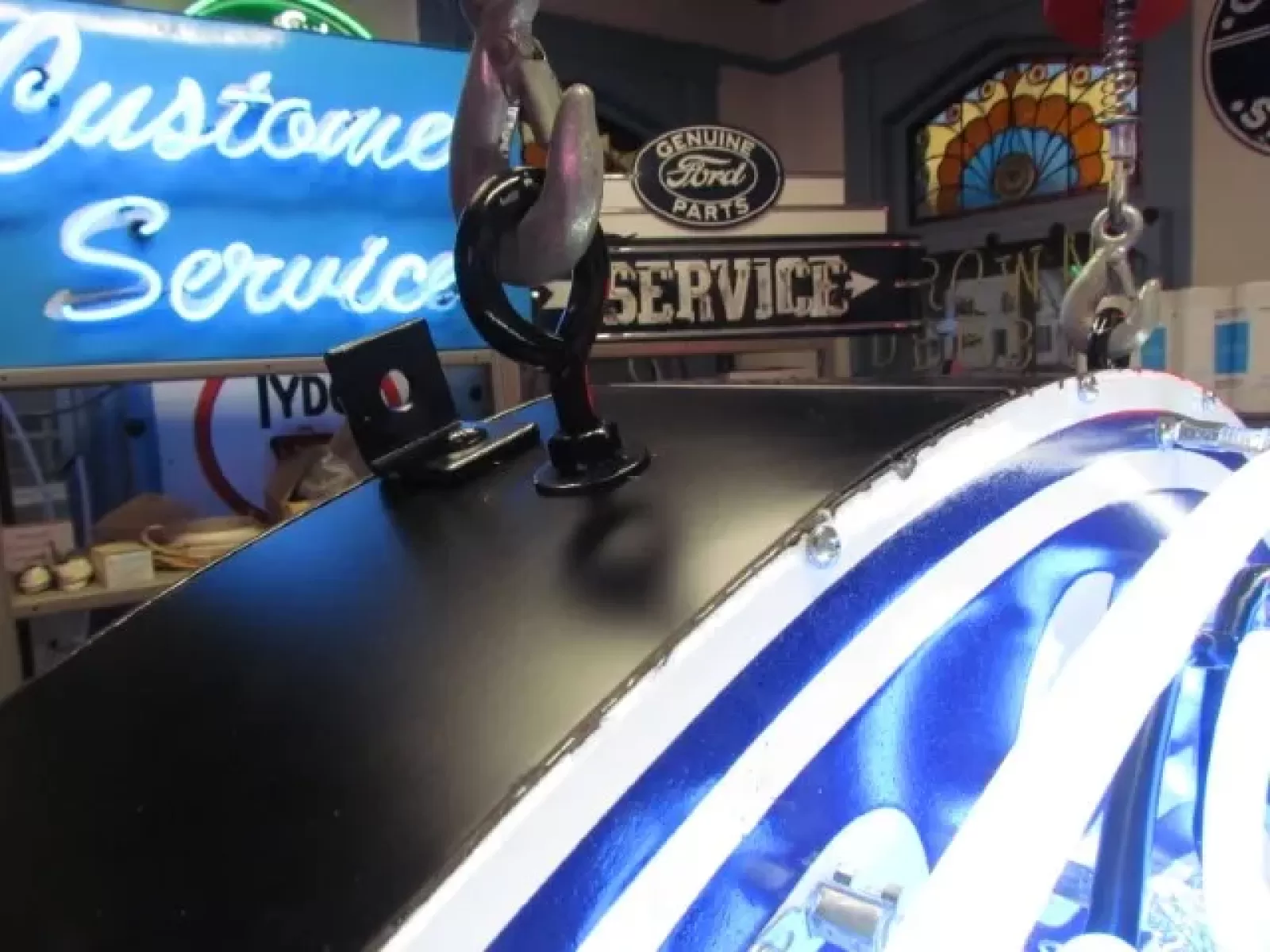Please do not confuse our neon signs with the neon signs being sold in the large car auctions around the country. Our new neon signs are new porcelain or painted just like they were in the 1940's & 1950's. Most new signs at the auctions are either clear-coated vinyl or screen-printed. Our new signs are built the same as the neon signs from the 1930's - 1950's. The only difference is instead of tin we are using factory primed aluminum & new porcelain.