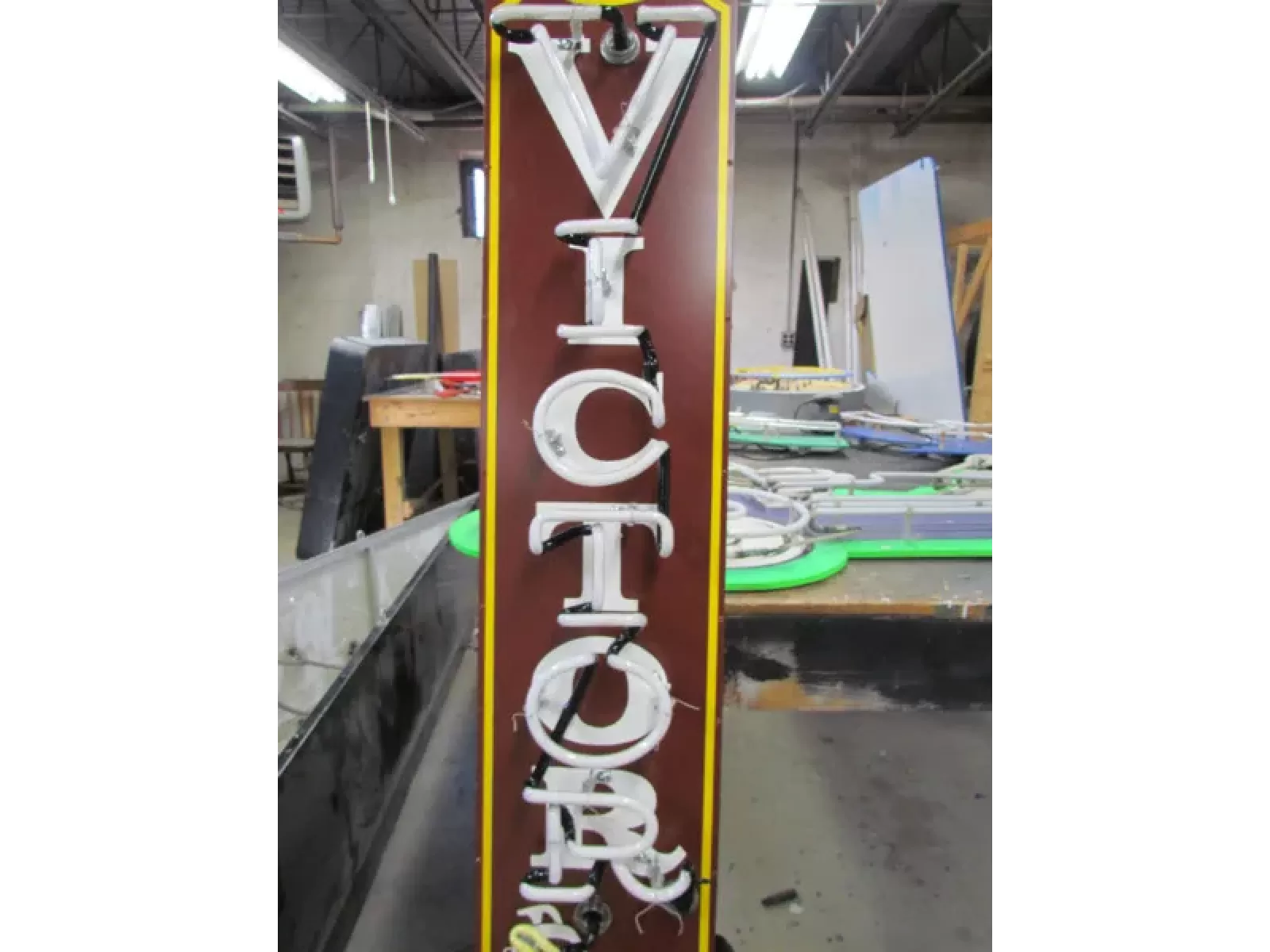 We also offer over 100 new painted full size signs available to choose from, or bring your own ideas and we will custom build a sign for you. Our new signs are made right here in our shop & look right at home next to your original porcelain neon signs. Our new signs are hand painted just like they have been for almost a century. Our lead sign painter has been painting signs for over 60 years & oversees all artwork.