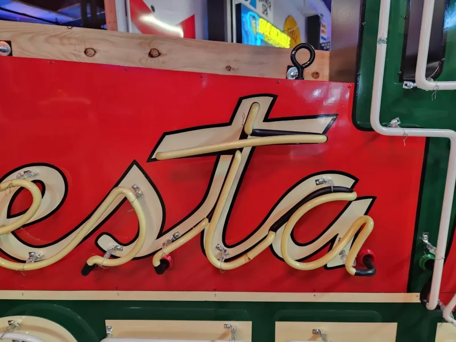 Please do not confuse our neon signs with the neon signs being sold in the large car auctions around the country. Our new signs are painted just like they were in the 1940's & 1950's. Most new signs at the auctions are either clear-coated vinyl or screen-printed. Our new painted signs are built the same as tin painted signs from the 1930's - 1950's. The only difference is instead of tin we are using factory primed aluminum.