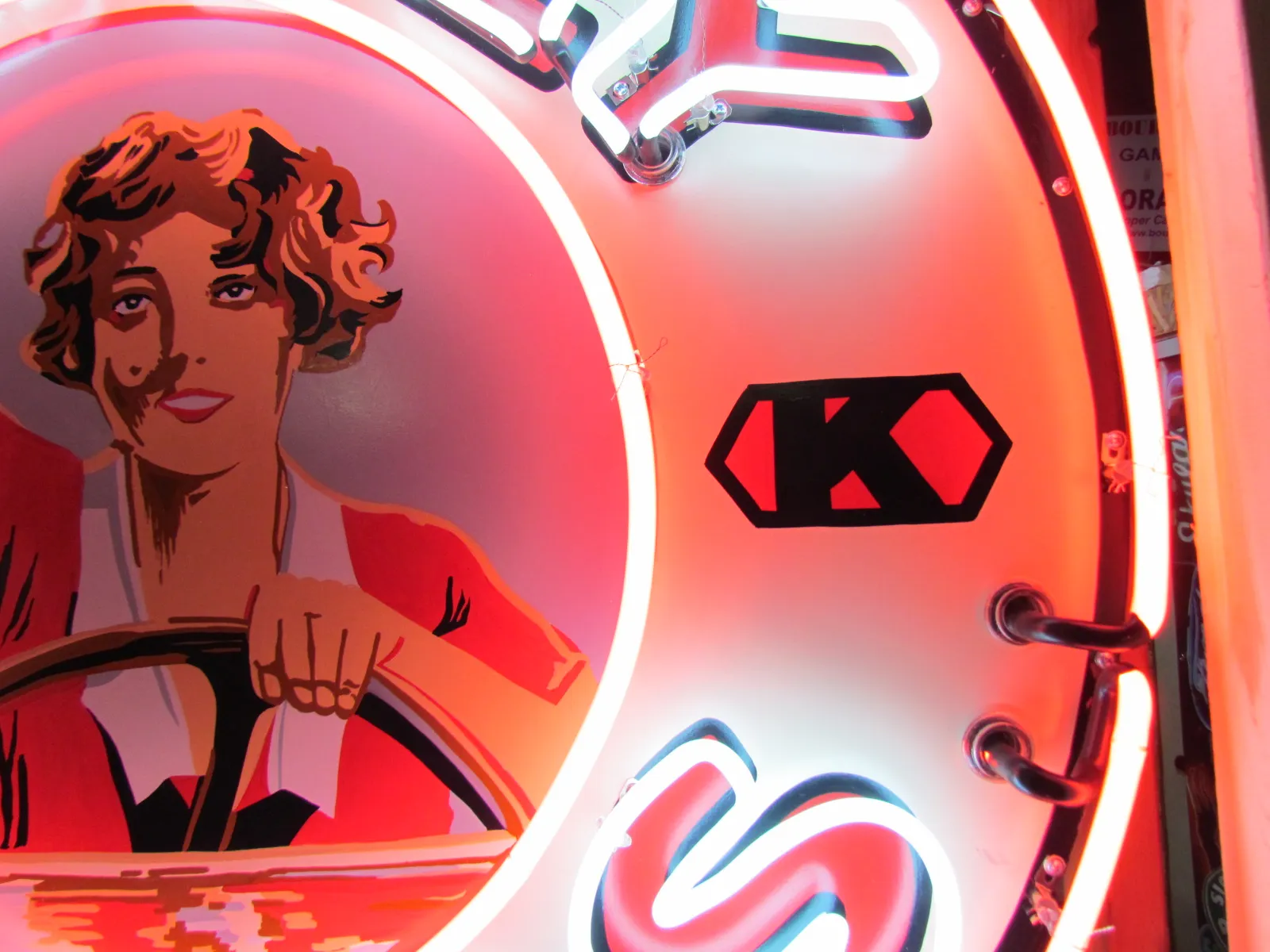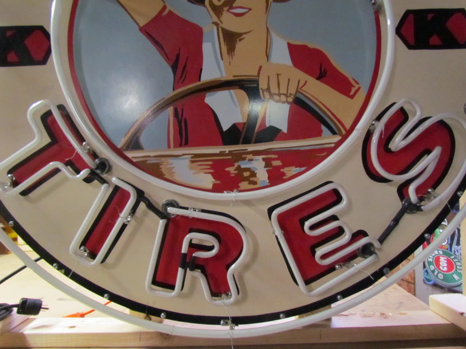 Please do not confuse our neon signs with the neon signs being sold in the large car auctions around the country. Our new neon signs are new porcelain or painted just like they were in the 1940's & 1950's. Most new signs at the auctions are either clear-coated vinyl or screen-printed. Our new signs are built the same as the neon signs from the 1930's - 1950's. The only difference is instead of tin we are using factory primed aluminum & new porcelain.