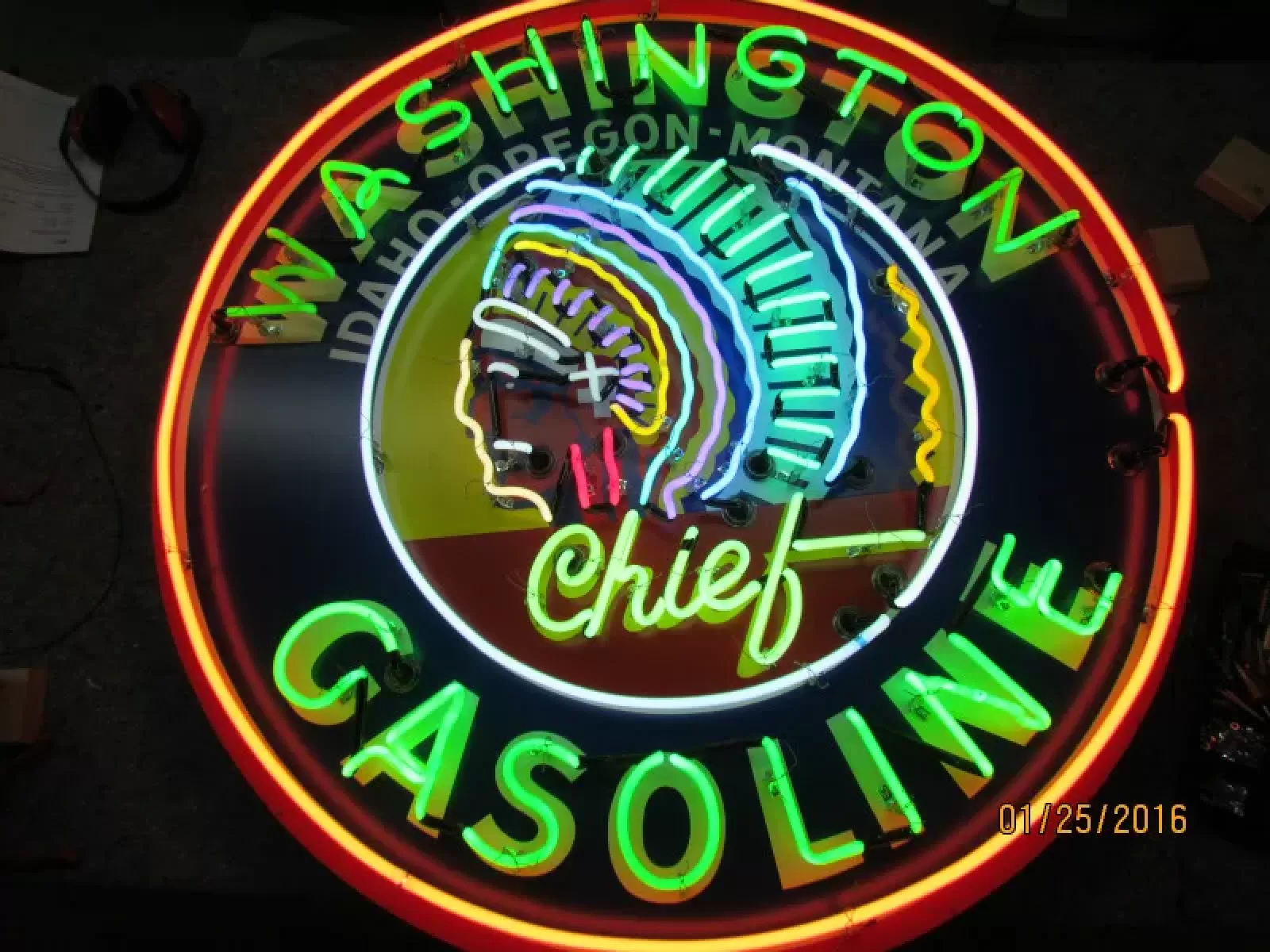New Washington Gasoline Porcelain Neon Sign 48" Diameter