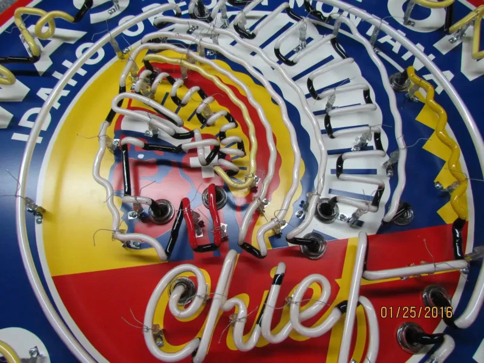 Our neon glass benders all have over 25 years each bending glass & their work is flawless. The faces of our signs are clean & pop for that for that perfect look. The backside of our signs have a 6" deep metal enclosure (can) that contains the best parts available today including the glass housings,  wiring,  self regulating transformers, mechanical chasers or spellers, wall brackets & roof hook supports & support framework for our larger signs.