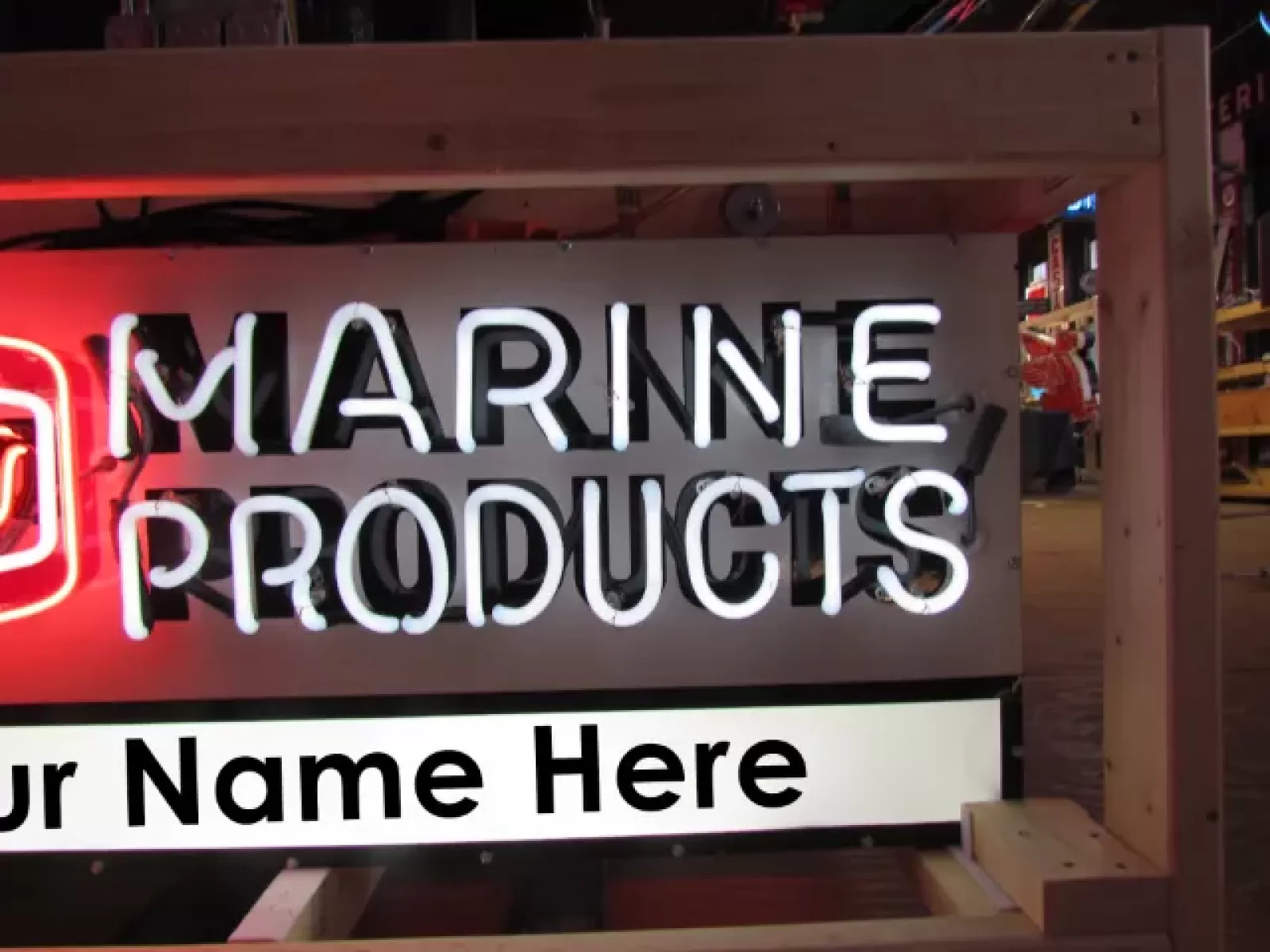Our neon glass benders all have over 25 years each bending glass & their work is flawless. The faces of our signs are clean & pop for that for that perfect look. The backside of our signs have a 6" deep metal enclosure (can) that contains the best parts available today including the glass housings, wiring, self regulating transformers, mechanical chasers or spellers, wall brackets & roof hook supports & support framework for our larger signs.