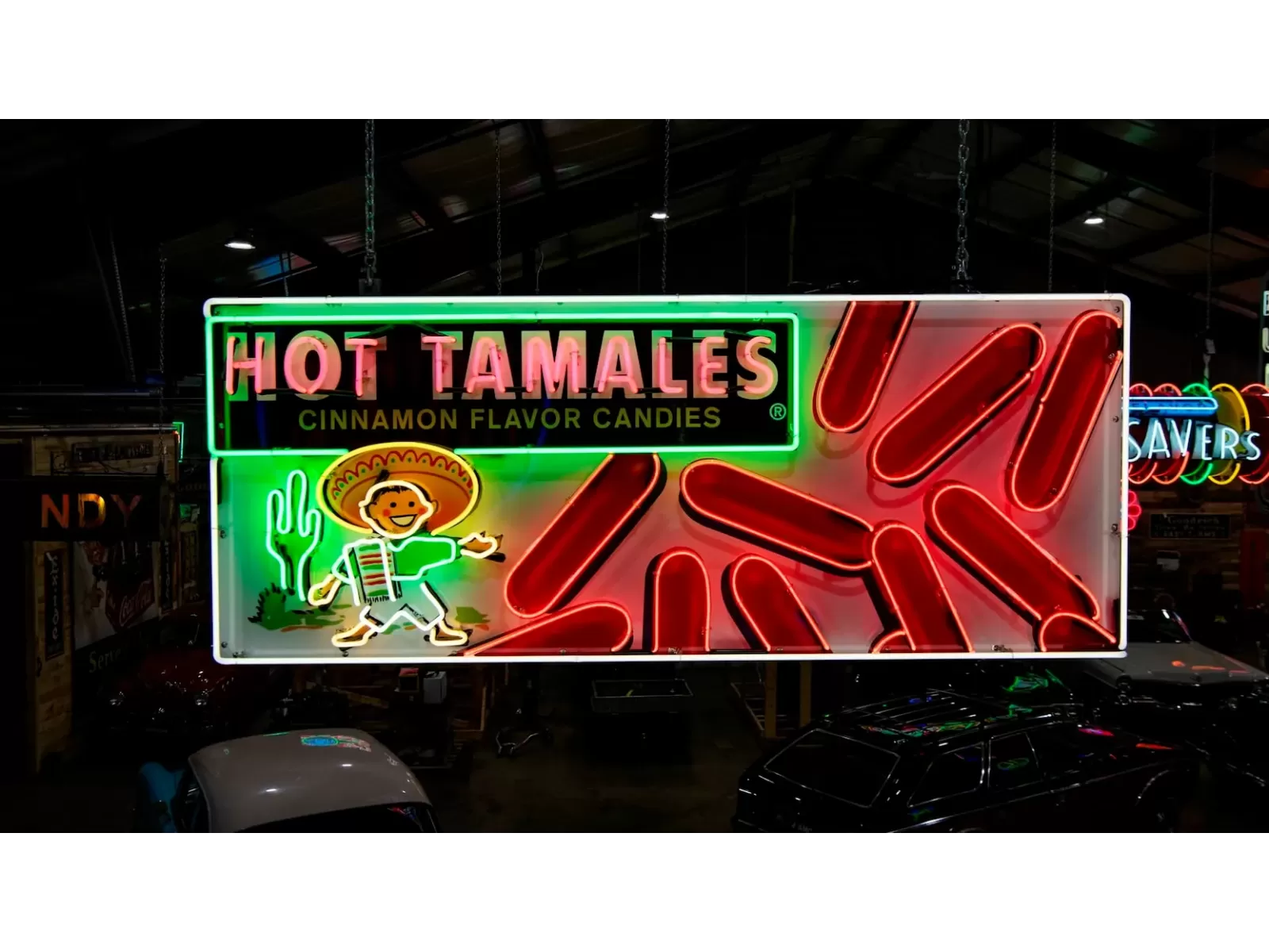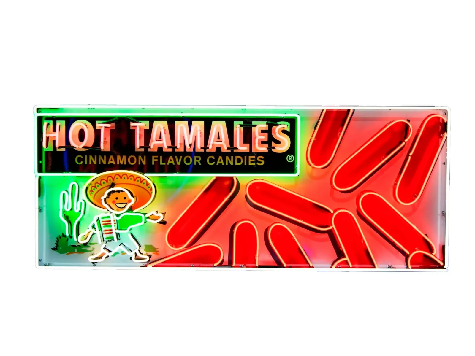 New Hot Tamales Candy Box Painted Neon Sign 79 IN W x 32 IN H