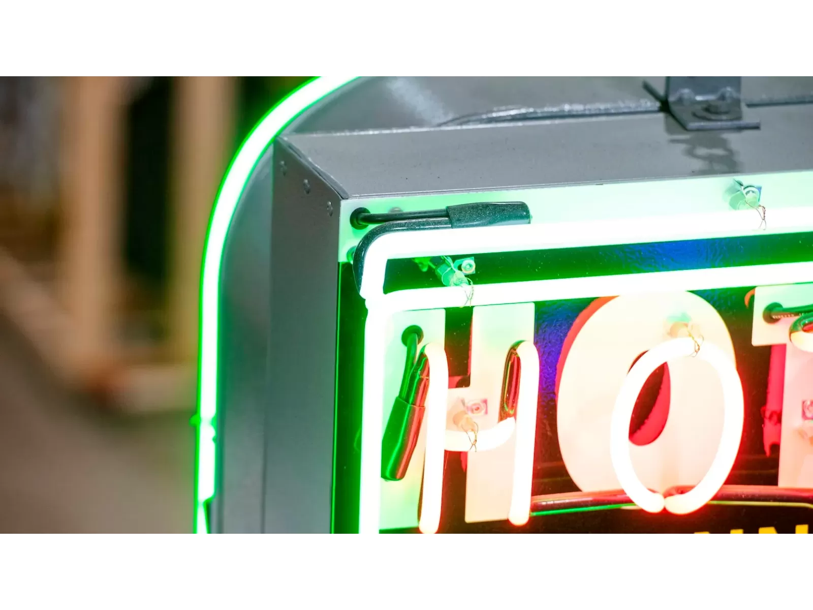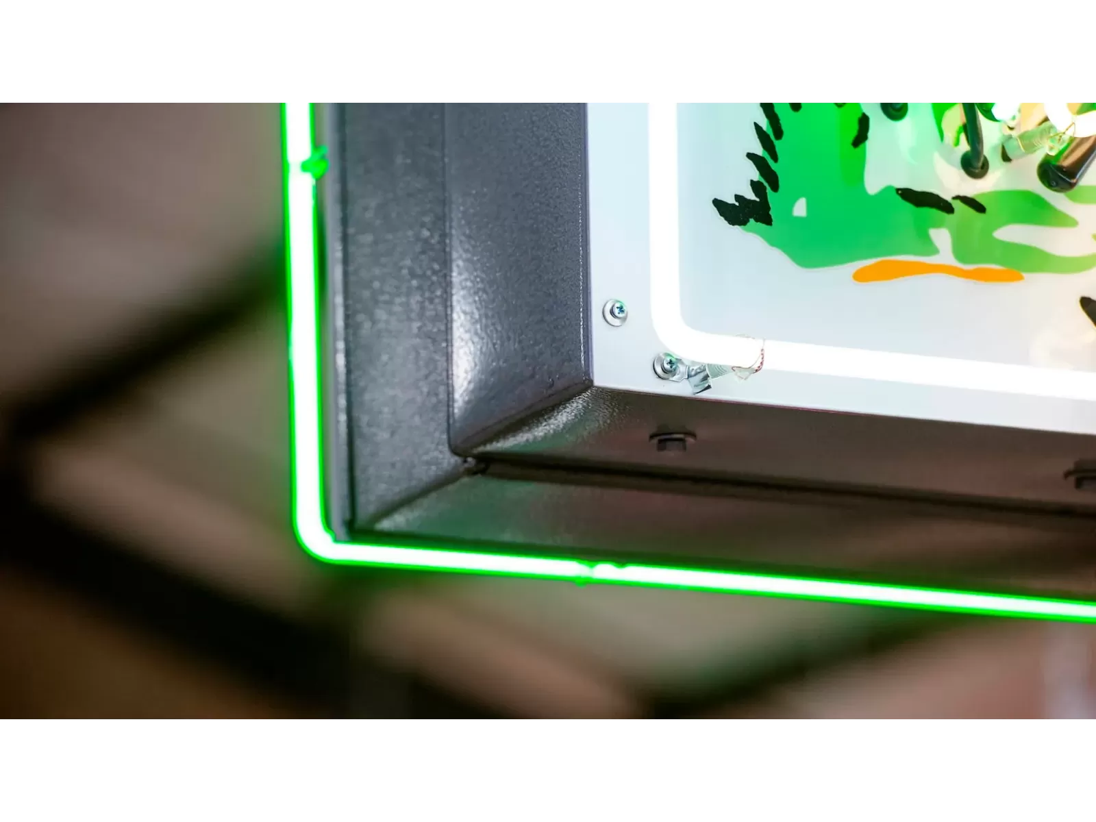 Our neon glass benders all have over 25 years each bending glass & their work is flawless. The faces of our signs are clean & pop for that for that perfect look. The backside of our signs have a 6" deep metal enclosure (can) that contains the best parts available today including the glass or porcelain housings, GTO wiring, self regulating magnetic transformers, heavy-duty hanging hooks and steel wall brackets all attached to heavy-duty welded steel frame.