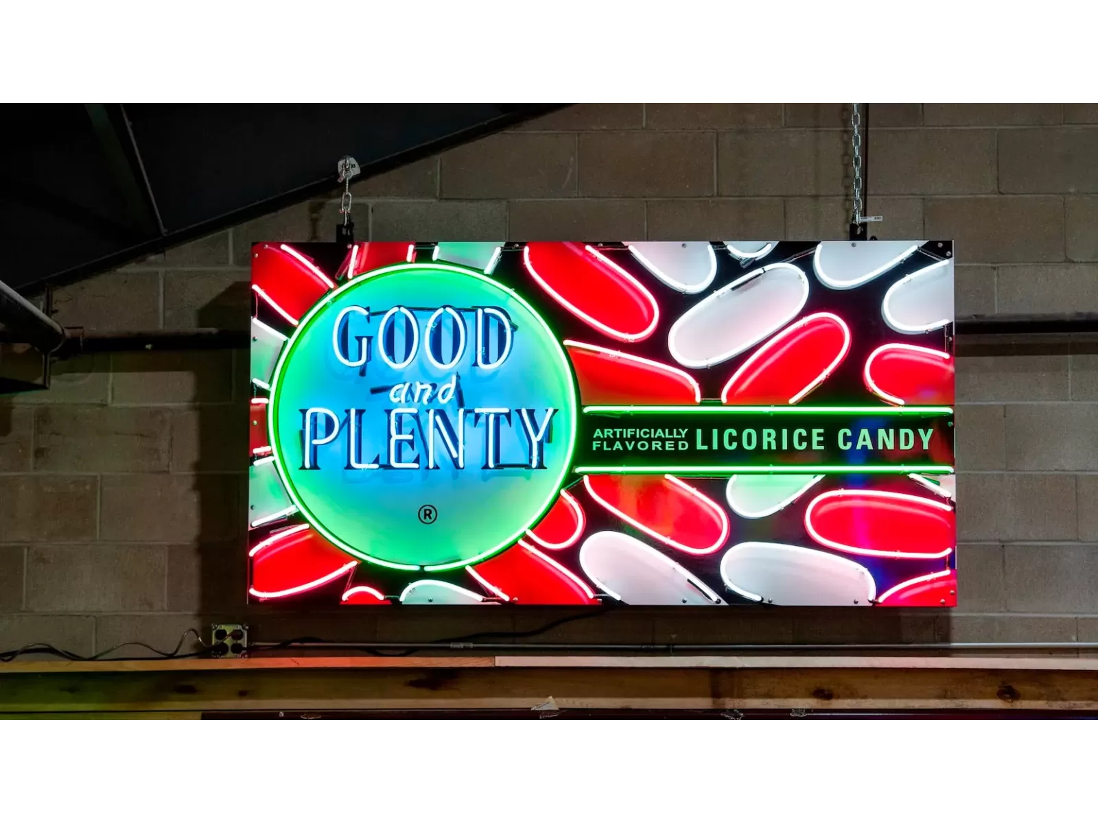 New Good and Plenty Candy Box Painted Neon Sign 78 IN W x 40 IN H
