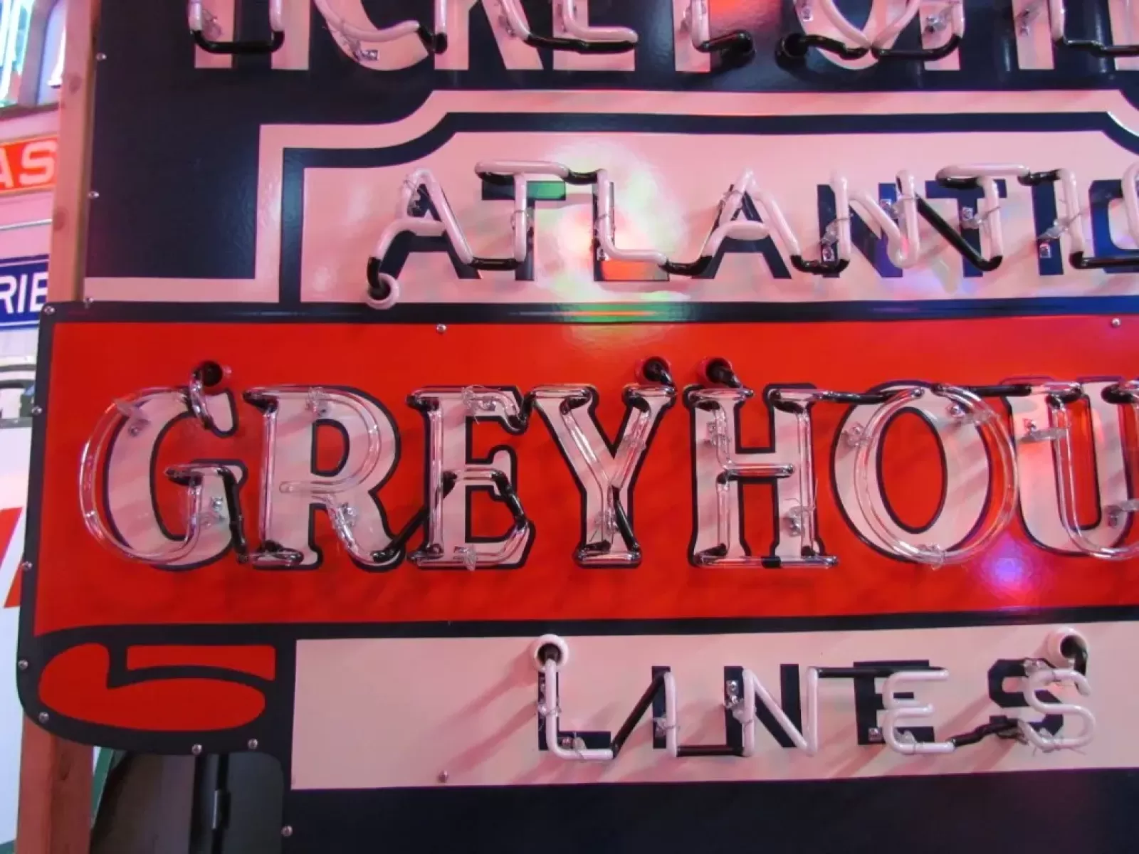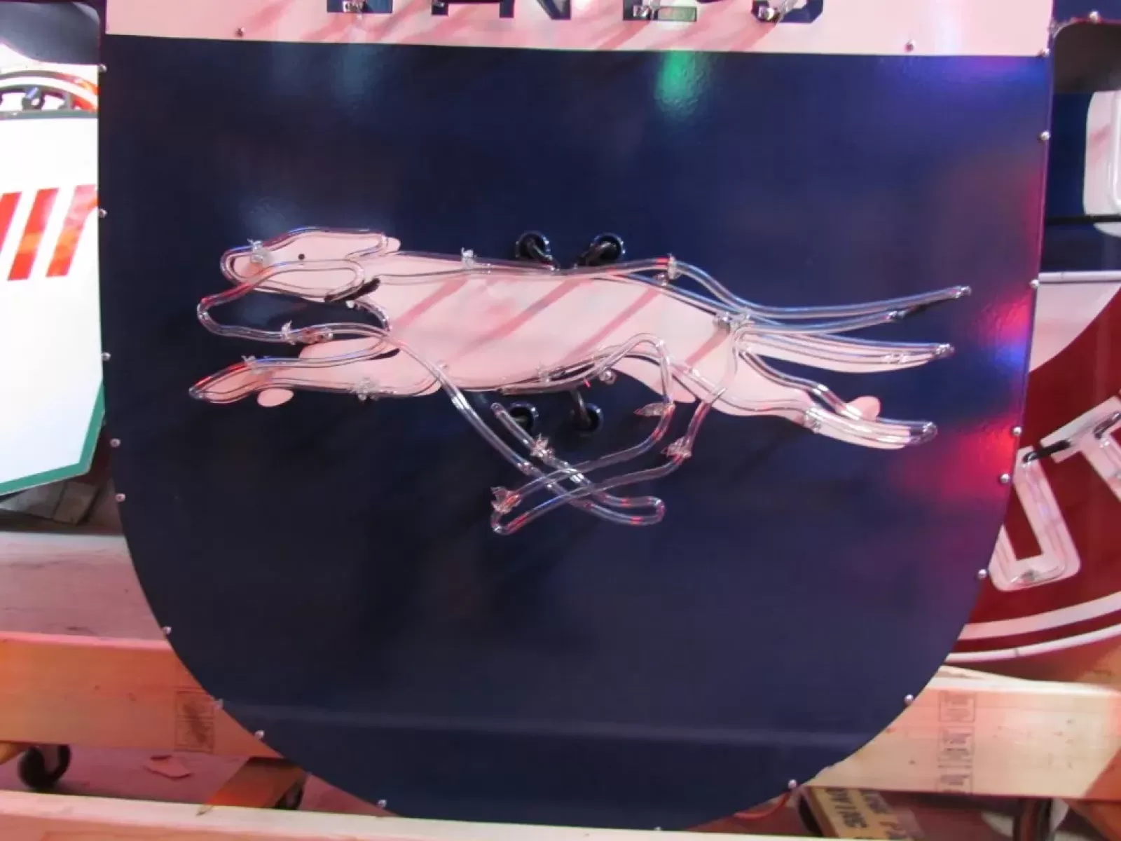 Our new porcelain neon signs are exactly the same as the porcelain neon signs from the 1940's - 1950's. The only difference is because of US regulations porcelain signs cannot be made in the United States so we have the sign faces made in India, shipped here & completely built in our shop. The only part of the sign made in India is the actual sign face. Our partner in India makes a high quality product that you will be happy to hang in your car barn & they are at a fraction of the original sign prices. All of our signs come with an original owner Lifetime Warranty. We keep the patterns for all the glass just in case there is any damage to the glass we can repair it here or send a pattern to a neon shop near you.  We can build any sign you see anywhere & give it our famous warranty. There are no warranties at auction houses.