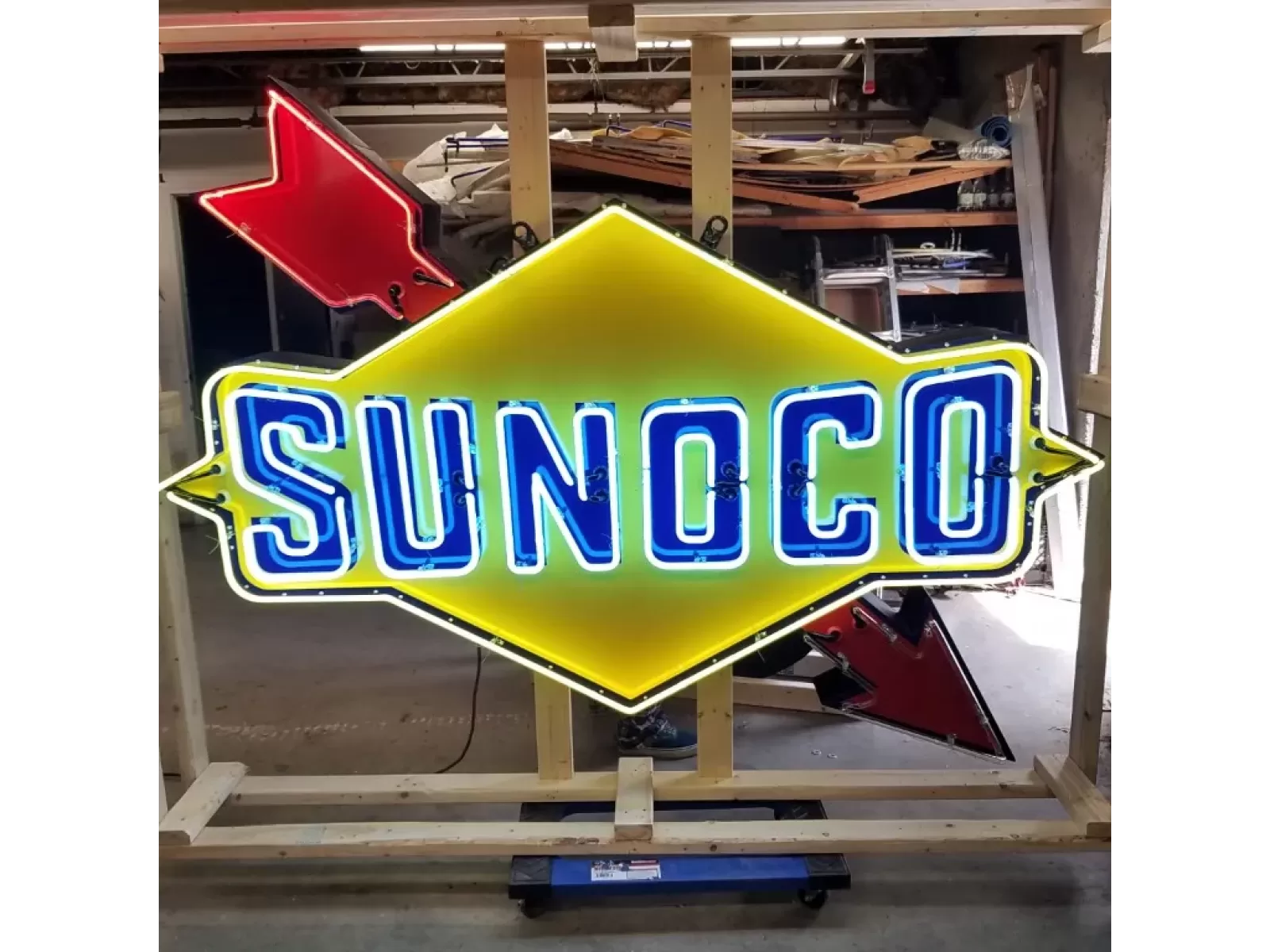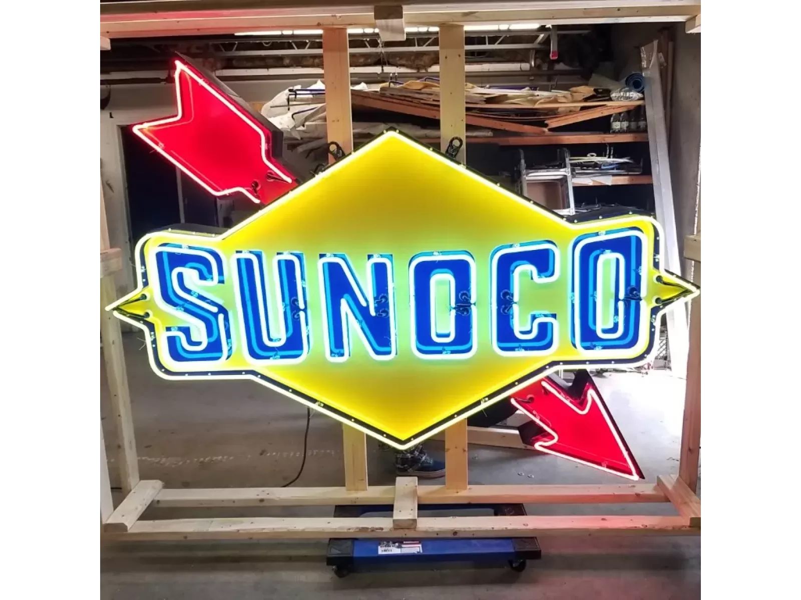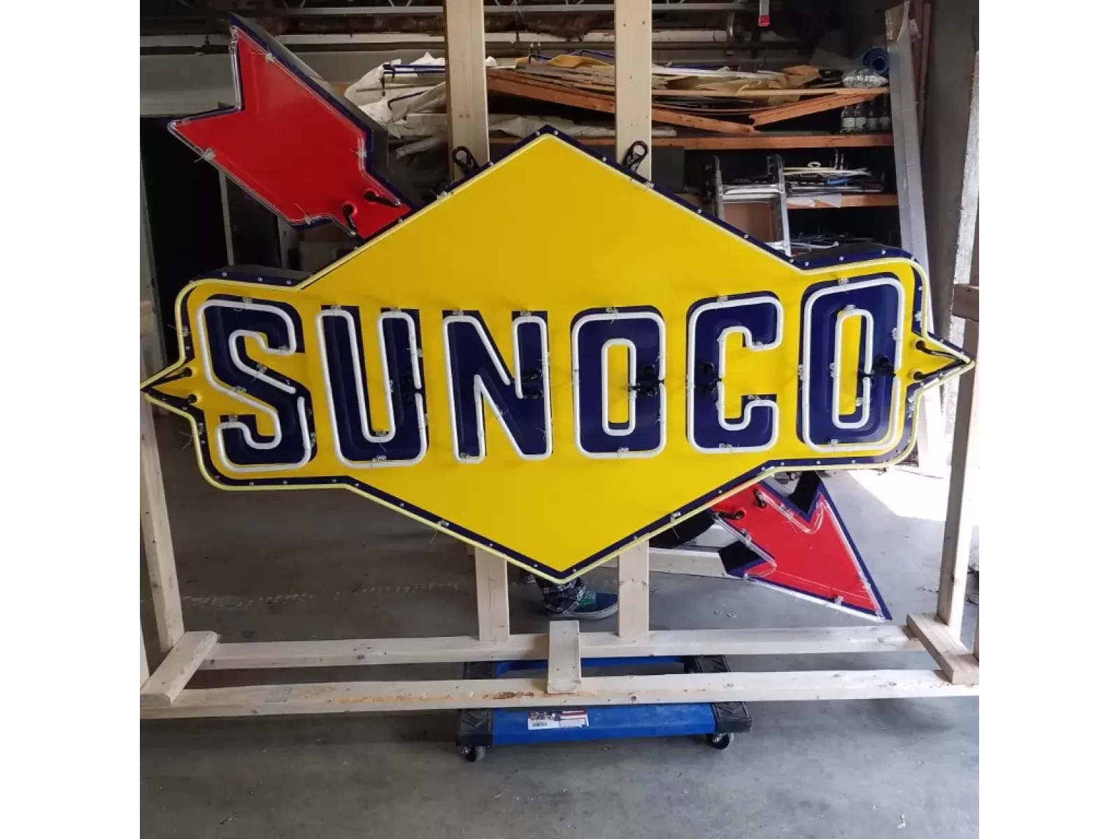 New Sunoco Porcelain Sign with Neon & Flashing Arrow 8 FT W x 5 FT H