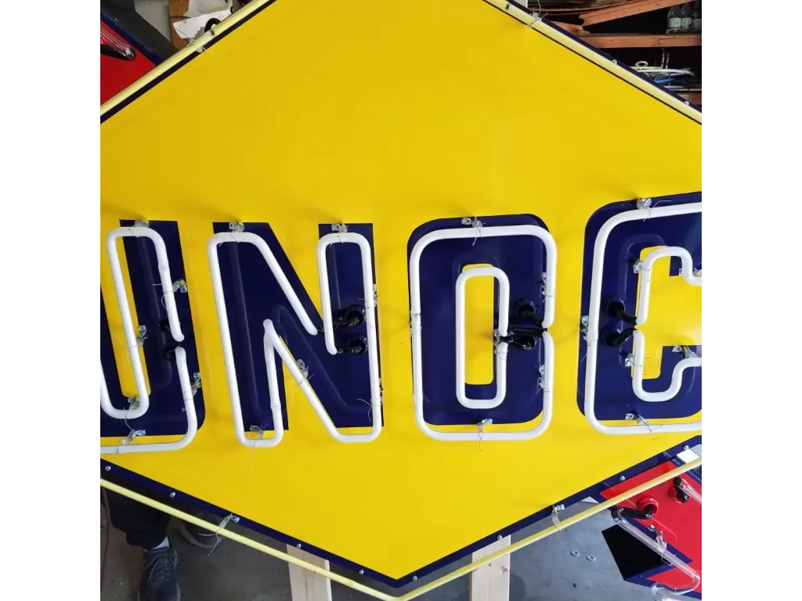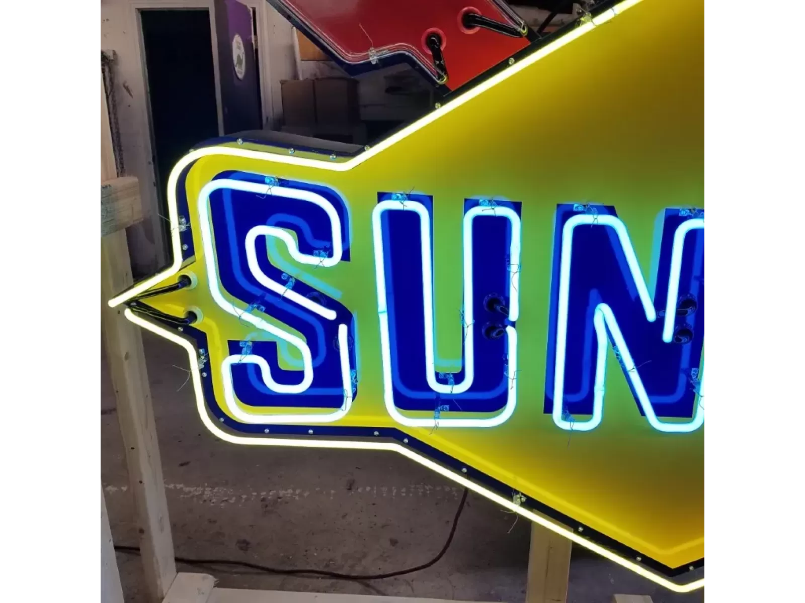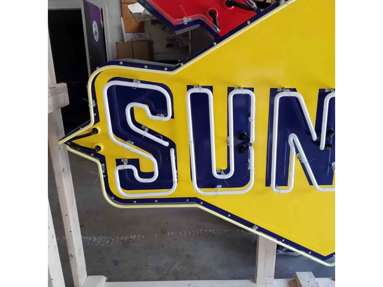 New Sunoco Porcelain Sign with Neon & Flashing Arrow 8 FT W x 5 FT H