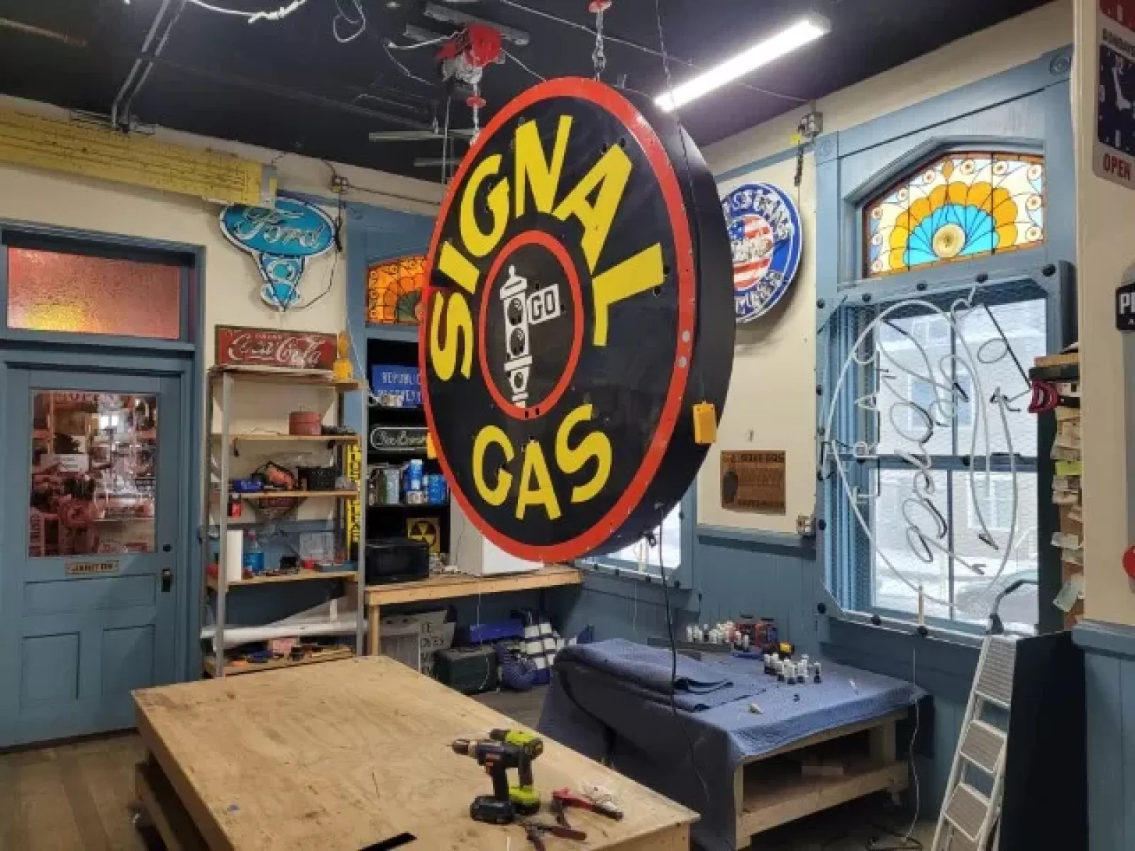 We also offer over 100 new painted full size signs available to choose from, or bring your own ideas and we will custom build a sign for you. Our new signs are made right here in our shop & look right at home next to your original porcelain neon signs. Our new signs are hand painted just like they have been for almost a century. Our lead sign painter has been painting signs for over 60 years & oversees all artwork.