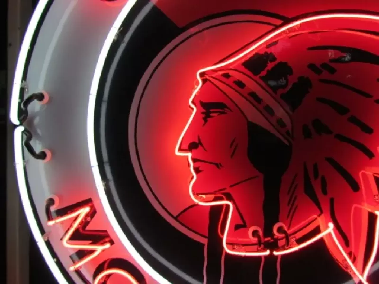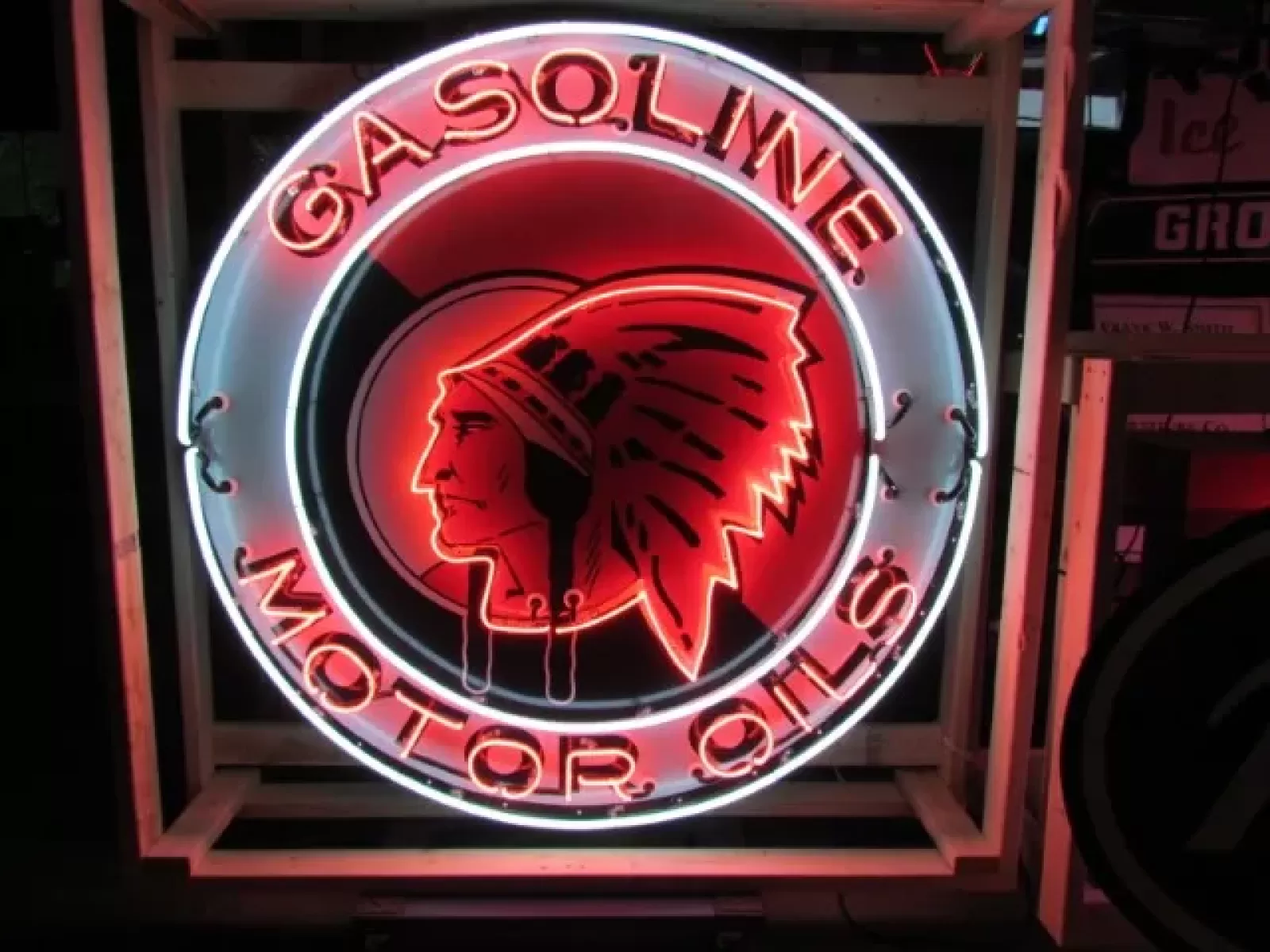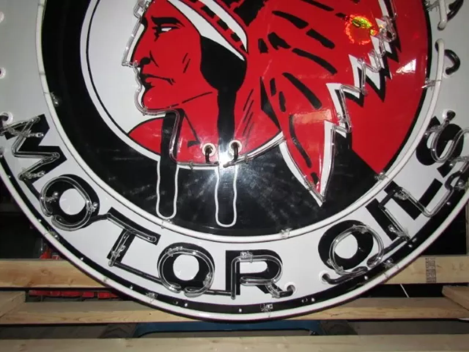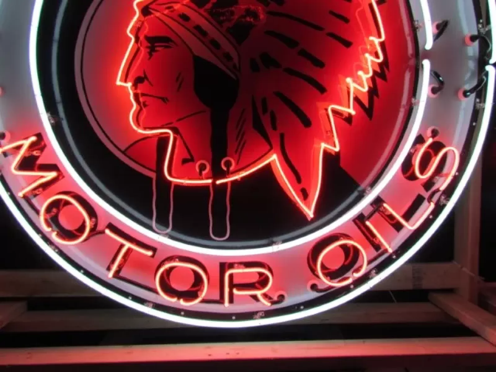 New Red Indian Gasoline Motor Oils Porcelain Neon Sign 60" Diameter