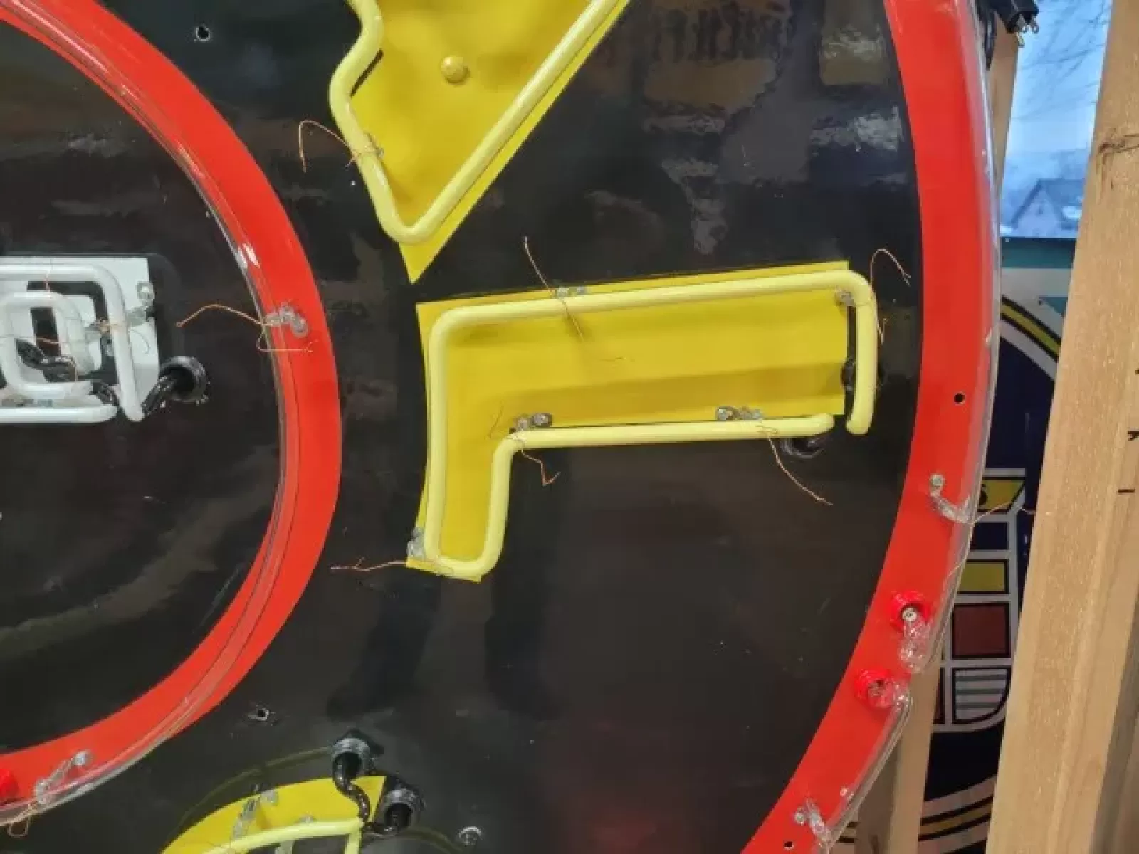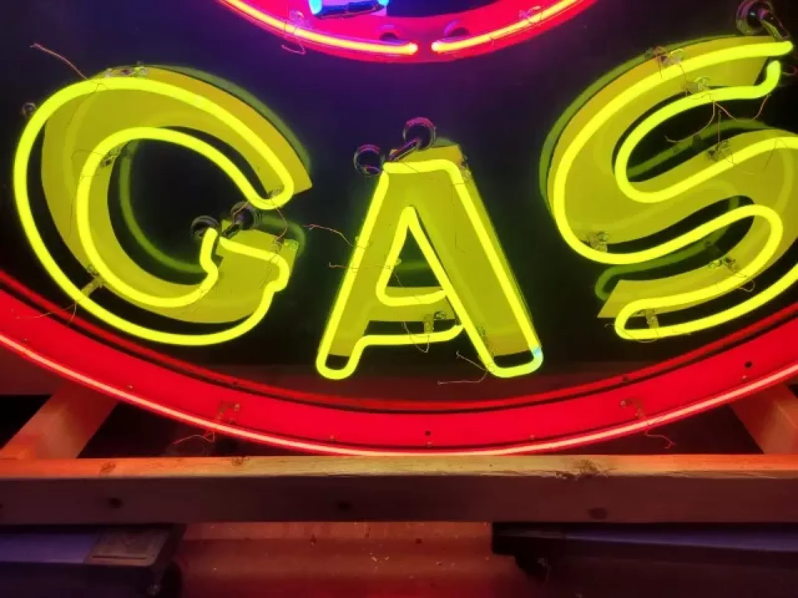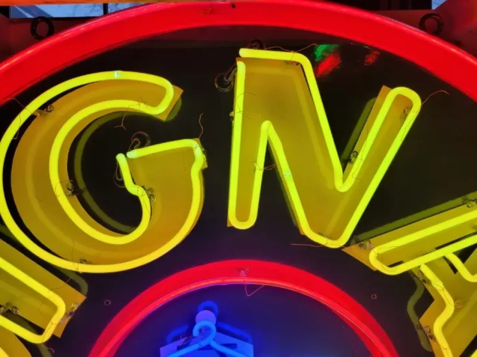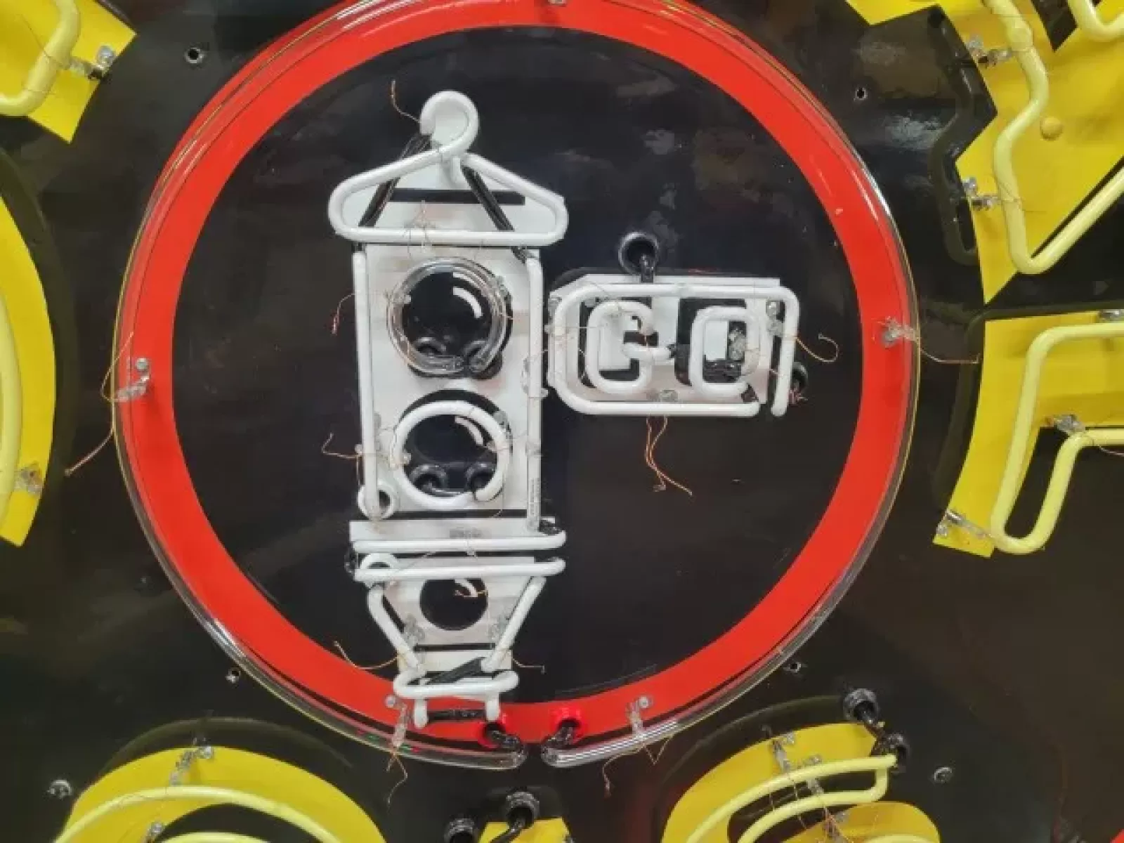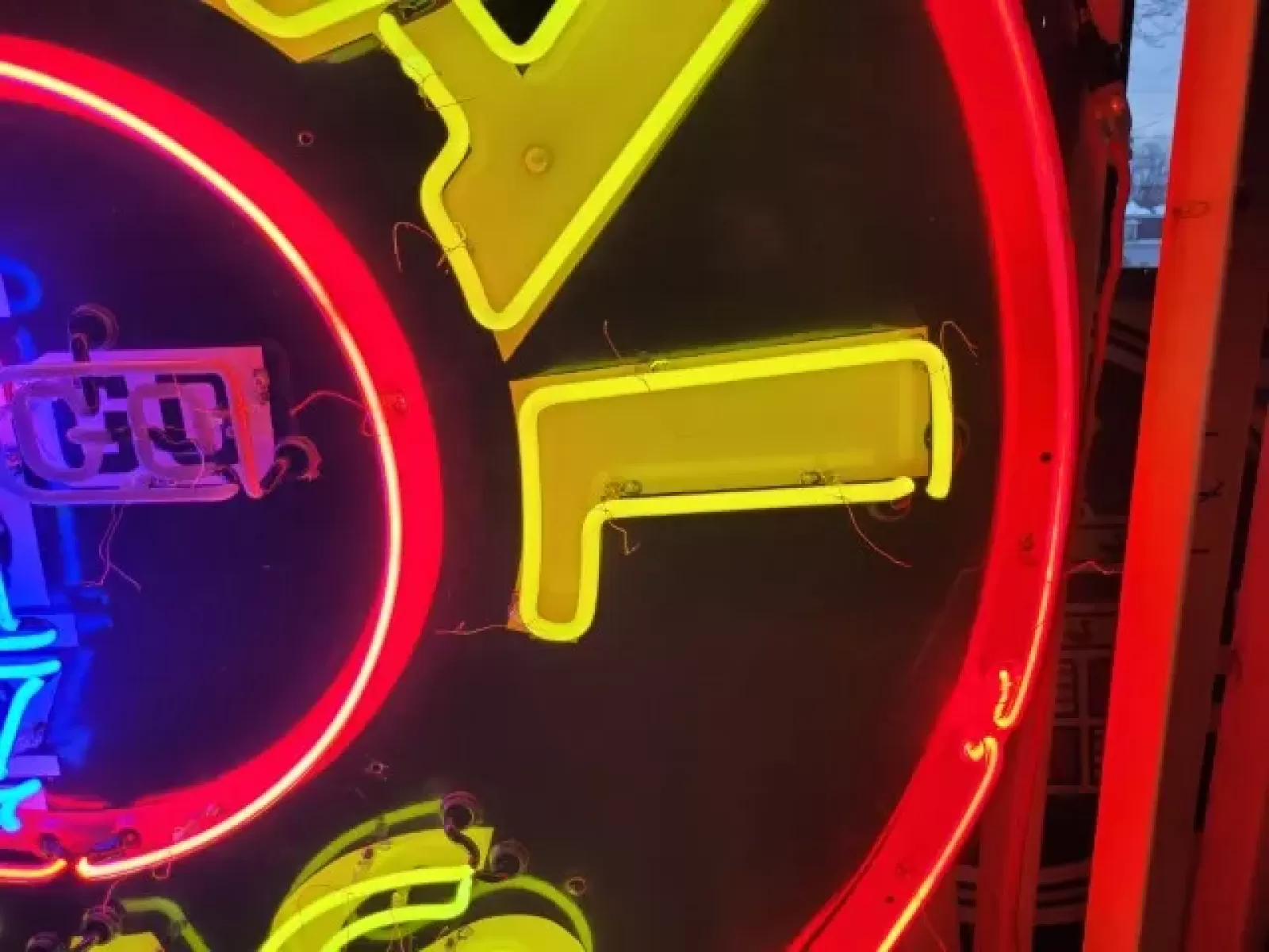 Our neon glass benders all have over 25 years each bending glass & their work is flawless. The faces of our signs are clean & pop for that for that perfect look. The backside of our signs have a 6" deep metal enclosure (can) that contains the best parts available today including the glass housings, wiring, self regulating transformers, mechanical chasers or spellers, wall brackets & roof hook supports & support framework for our larger signs.