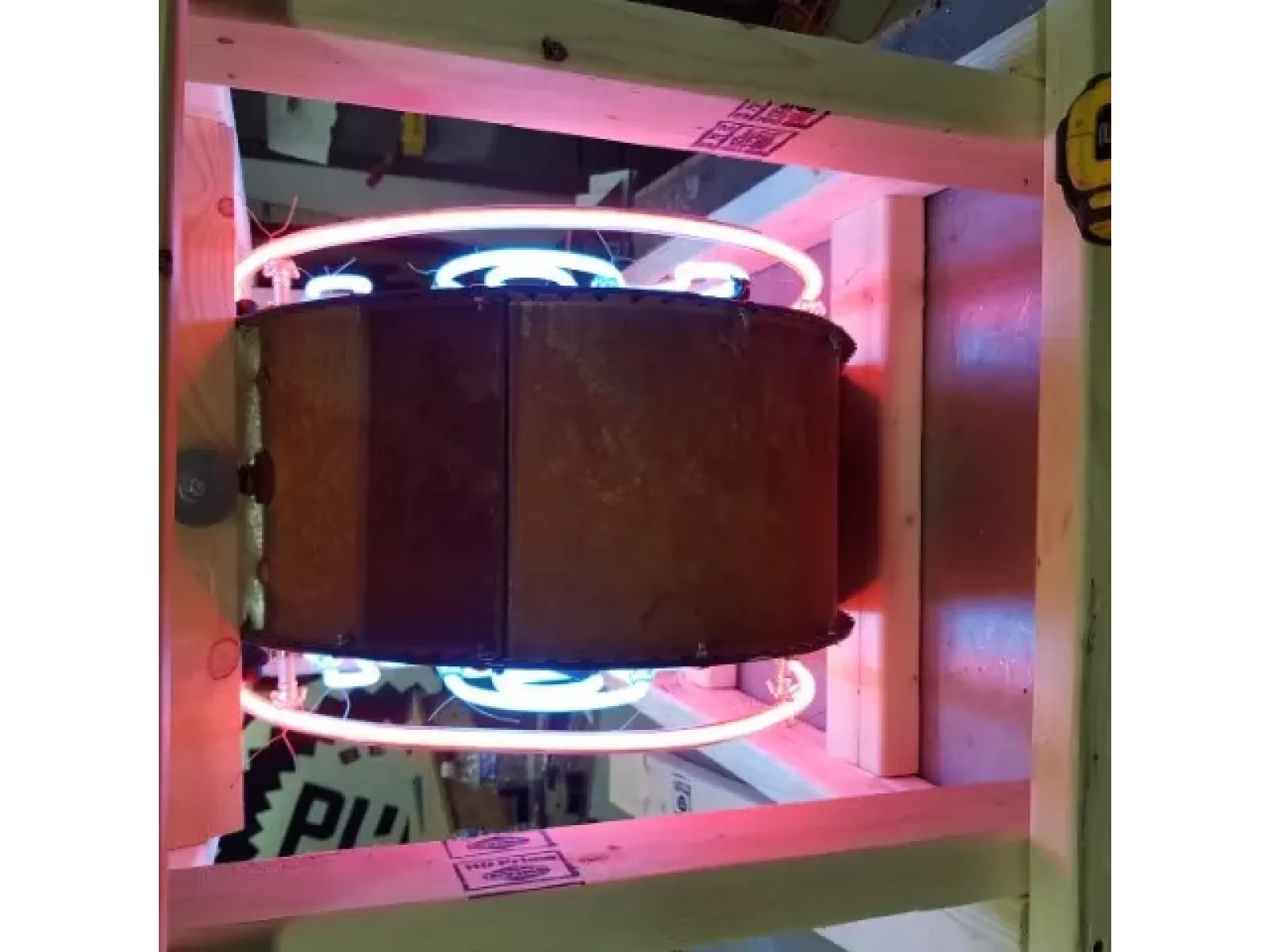 Our neon glass benders all have over 25 years each bending glass & their work is flawless. The faces of our signs are clean & pop for that for that perfect look. The backside of our signs have a 6" deep metal enclosure (can) that contains the best parts available today including the glass housings,  wiring,  self regulating transformers, mechanical chasers or spellers, wall brackets & roof hook supports & support framework for our larger signs.