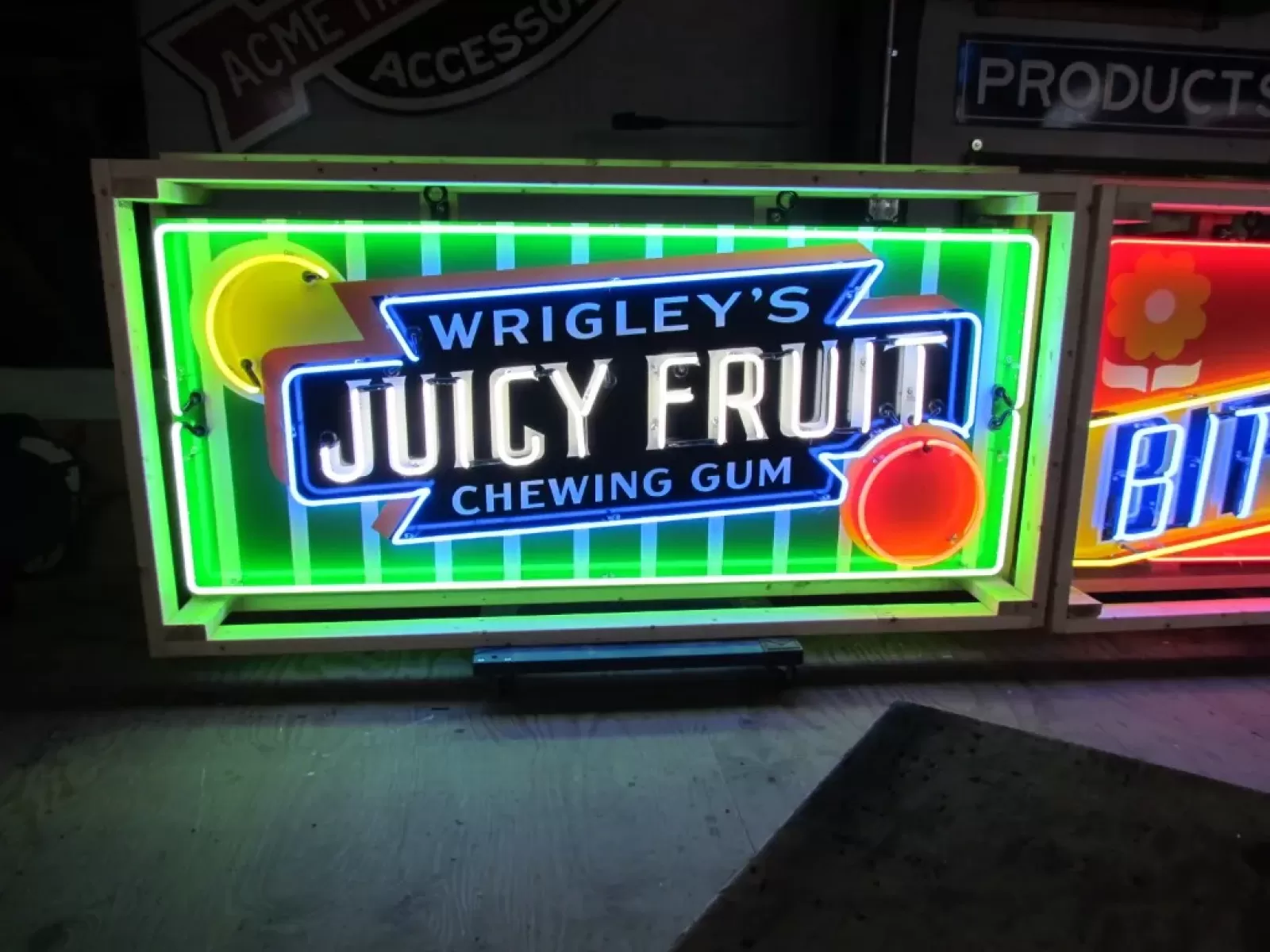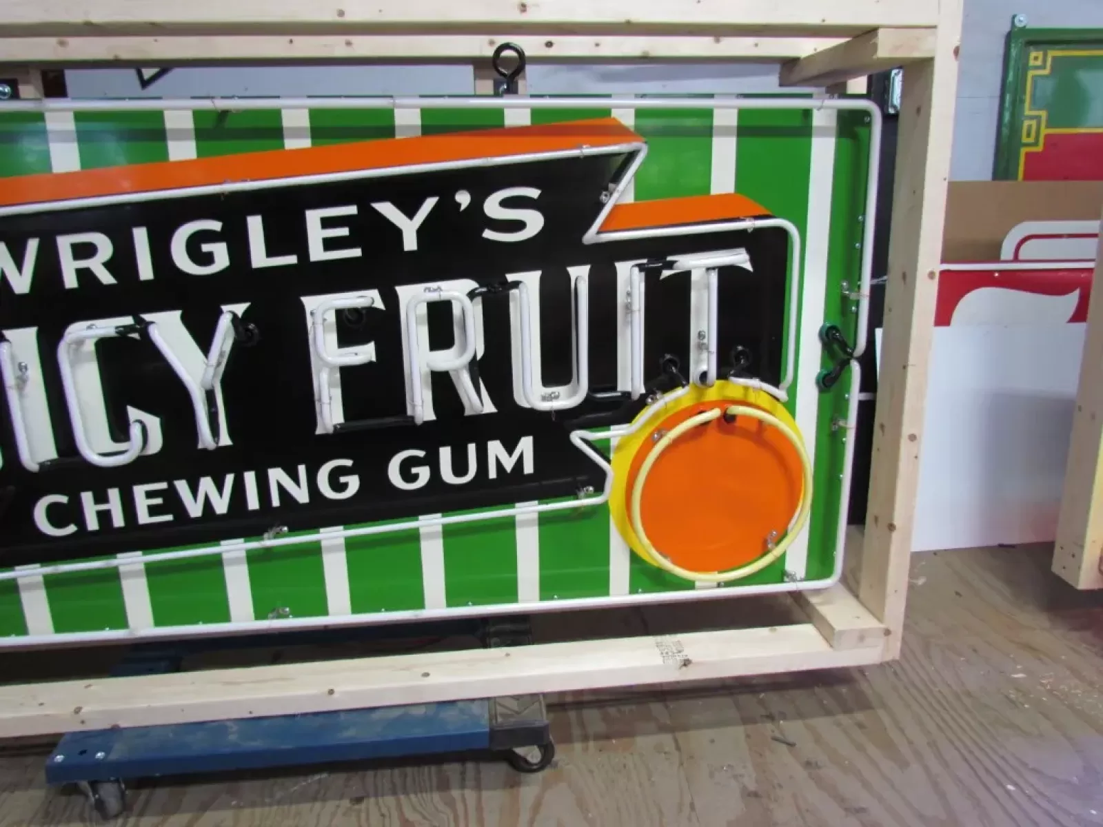 New Wrigley's Juicy Fruit Gum Candy Wrapper Painted Neon Sign 78 IN W x 34 IN H